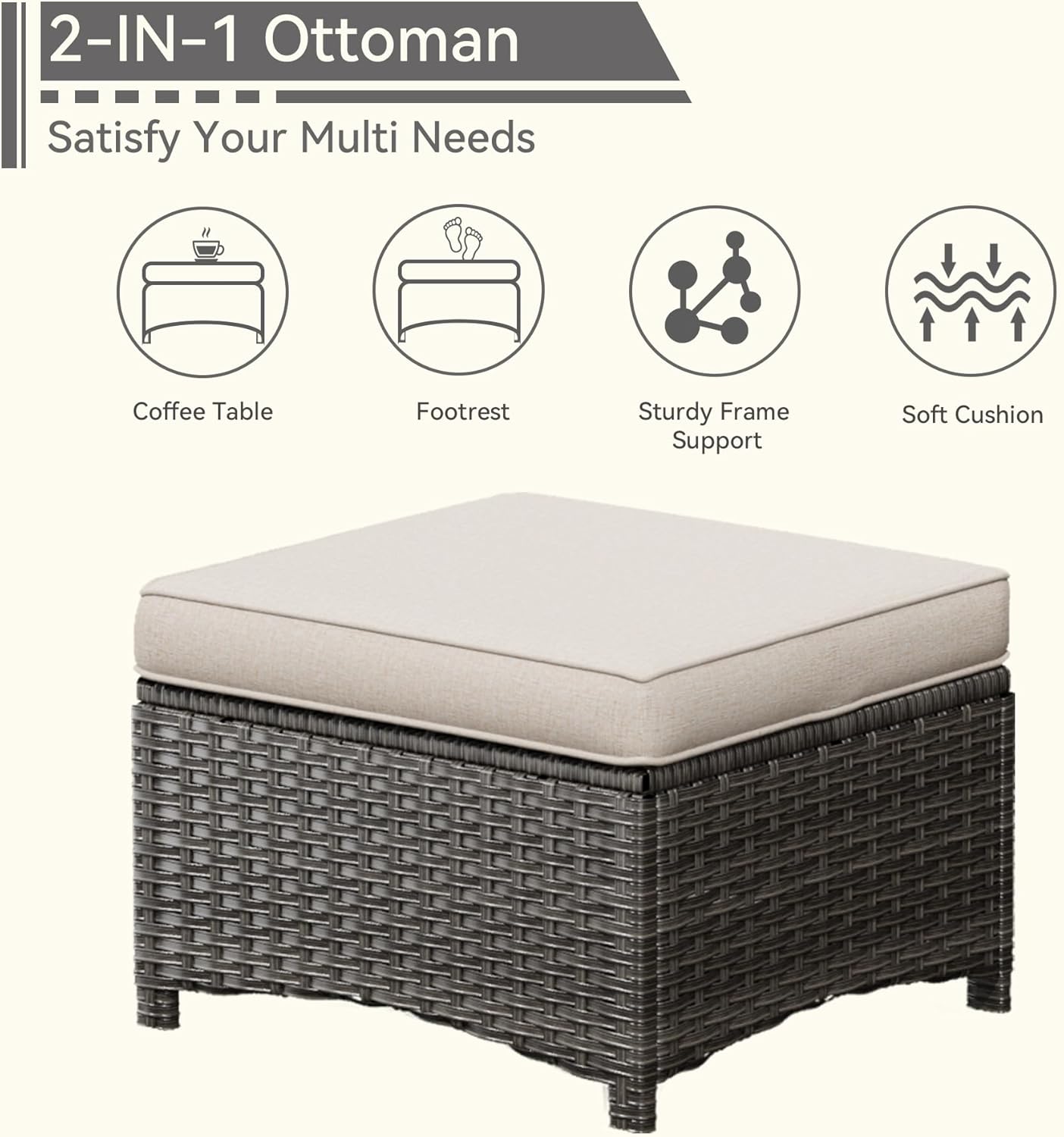 5 Piece Outdoor Patio Furniture Set Wicker Conversation Set Swivel Rocking Chairs with Side Table and Ottomans for Backyard, Porch, Deck, Beige