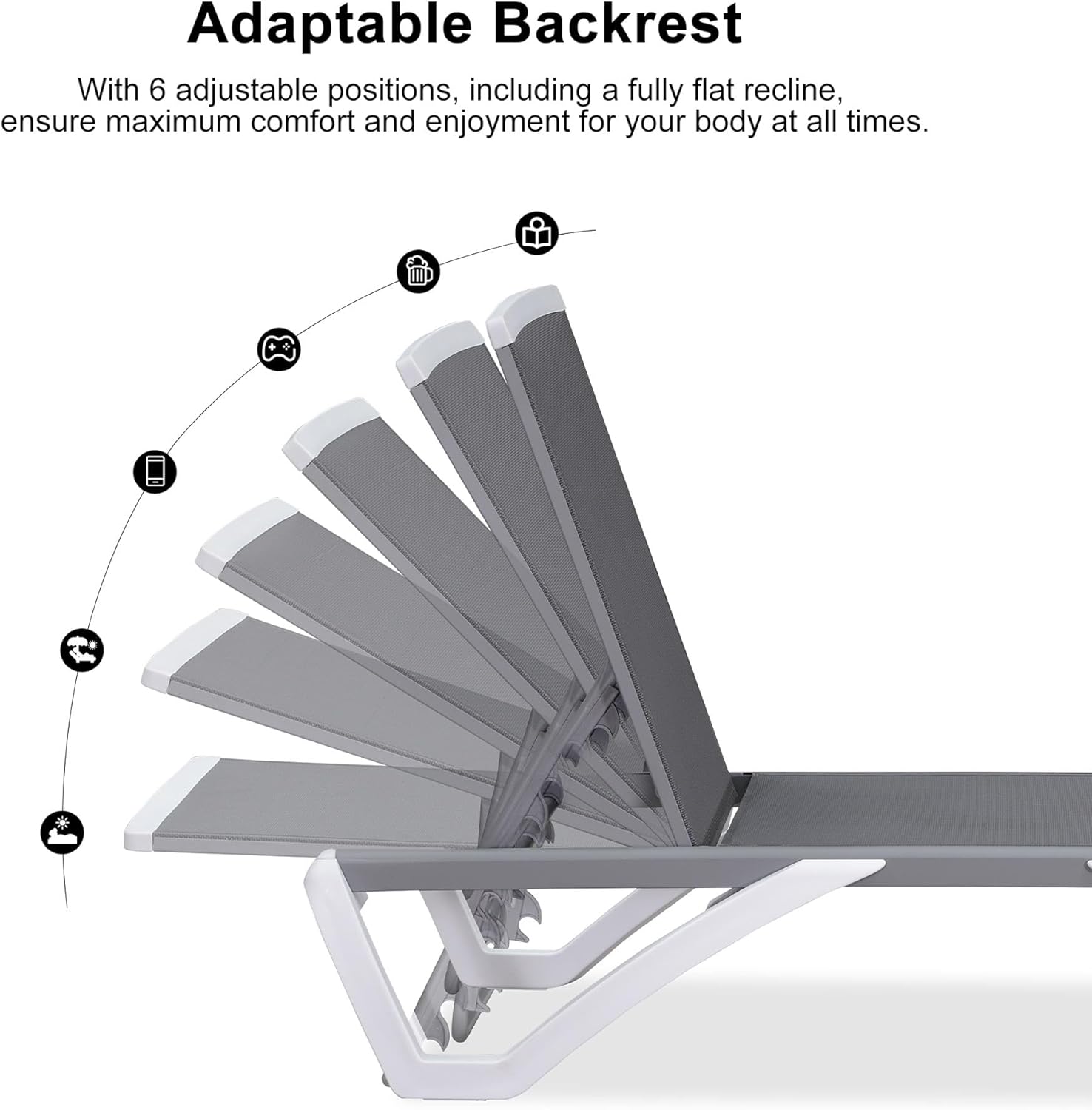 PURPLE LEAF Patio Chaise Lounge Chair Outside Aluminum Plastic Stackable Tanning Chairs for Pool Sunbathing Beach Deck Outdoor Lounger, Grey