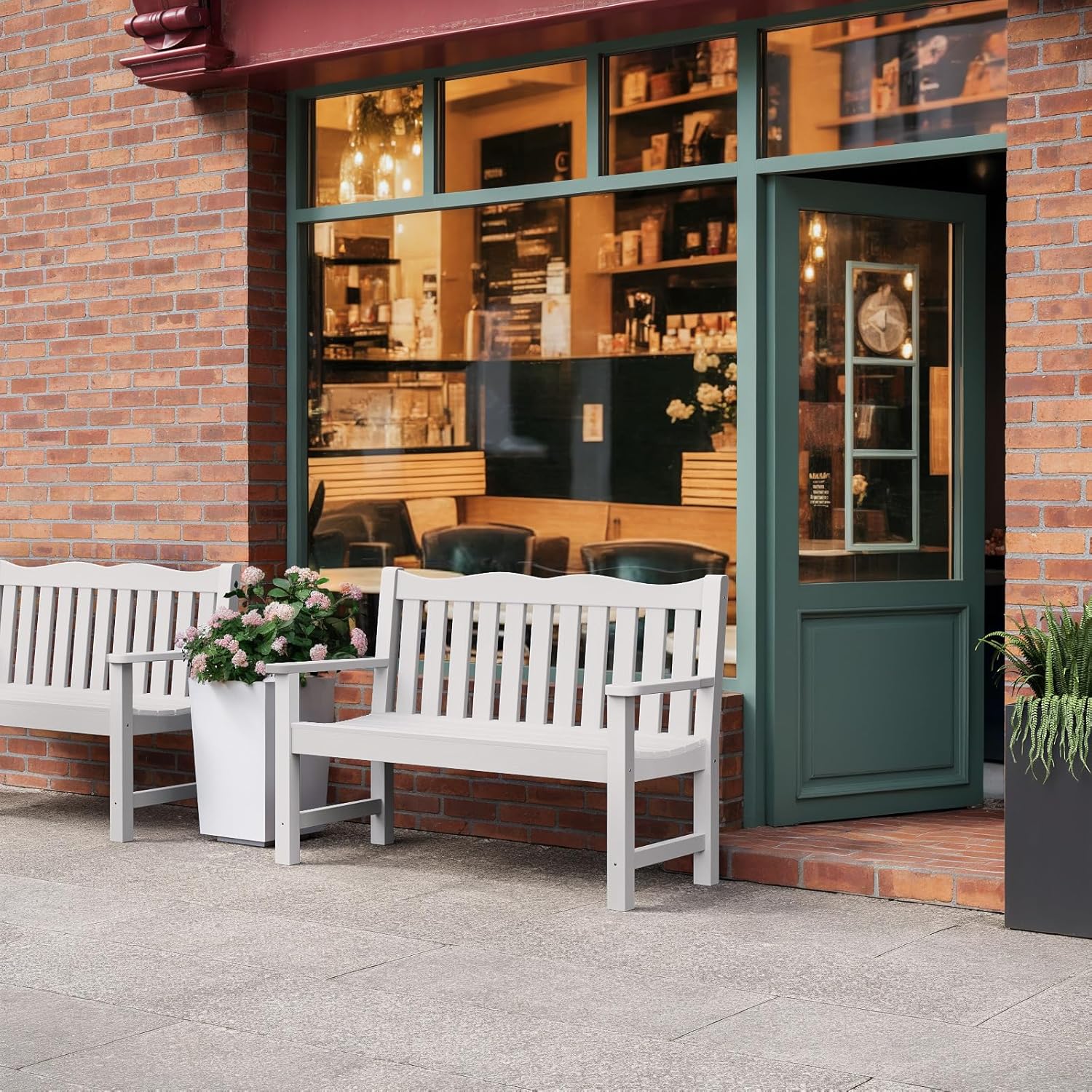 Stoog Garden Bench, 2-Person White Outdoor Bench, All-Weather HIPS Patio Bench with 800 lbs Weight Capacity, Never Rot or Fade, for Garden, Porch, Backyard and Park, White