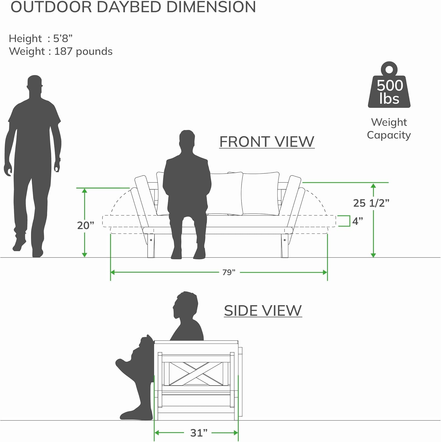 - [STURDY] This outdoor couch is crafted to endure extensive use and has a capacity to bear up to 500 pounds.