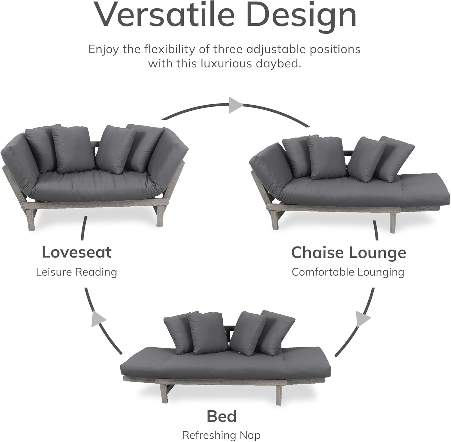 Cambridge Casual West Lake Mahogany Outdoor Convertible Sofa Daybed, Weathered Gray/Gray Cushion