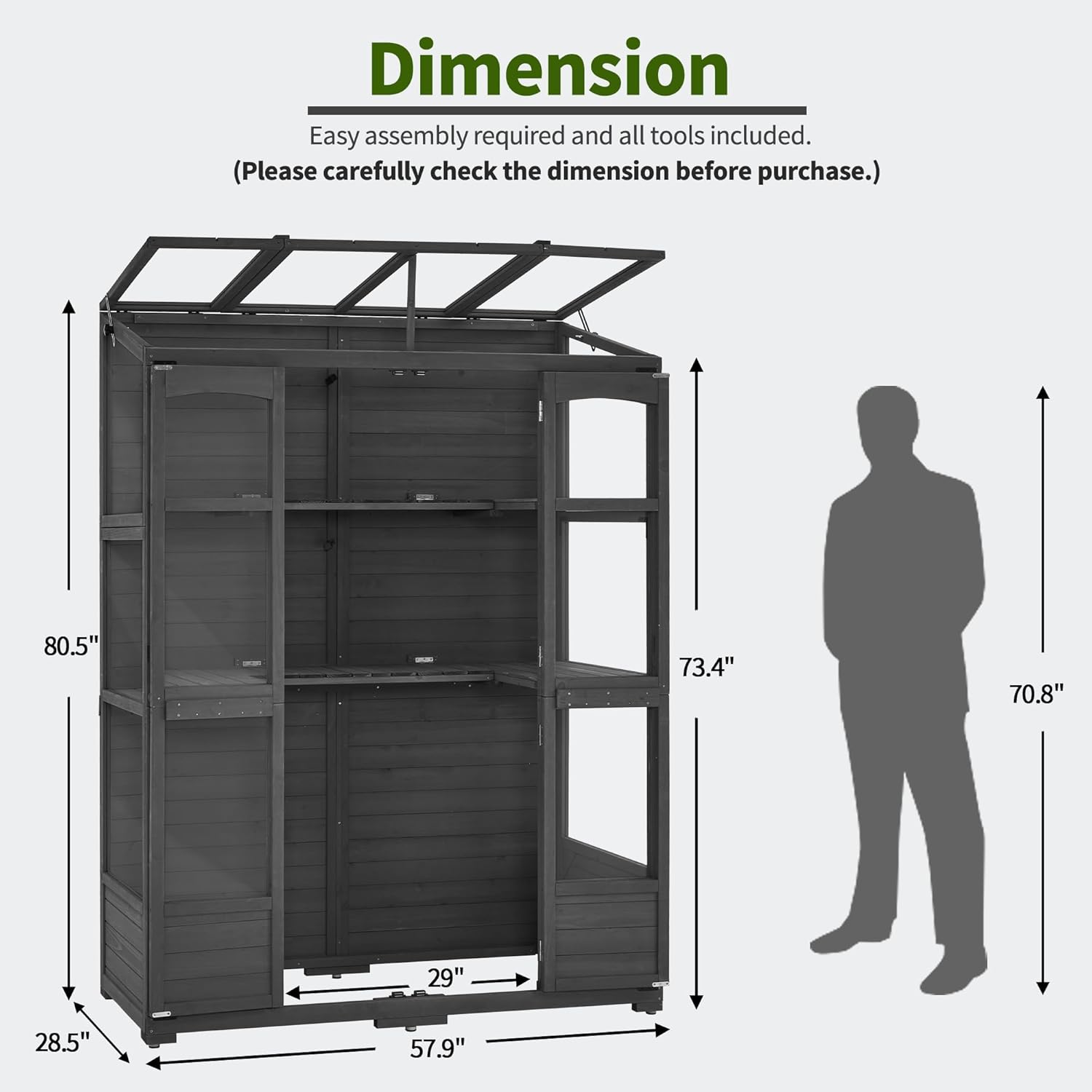 MCombo Wooden Greenhouse, Walk-in Outdoor Greenhouse with Openable Roof and Lockable Door, 0899 (Dark Grey)