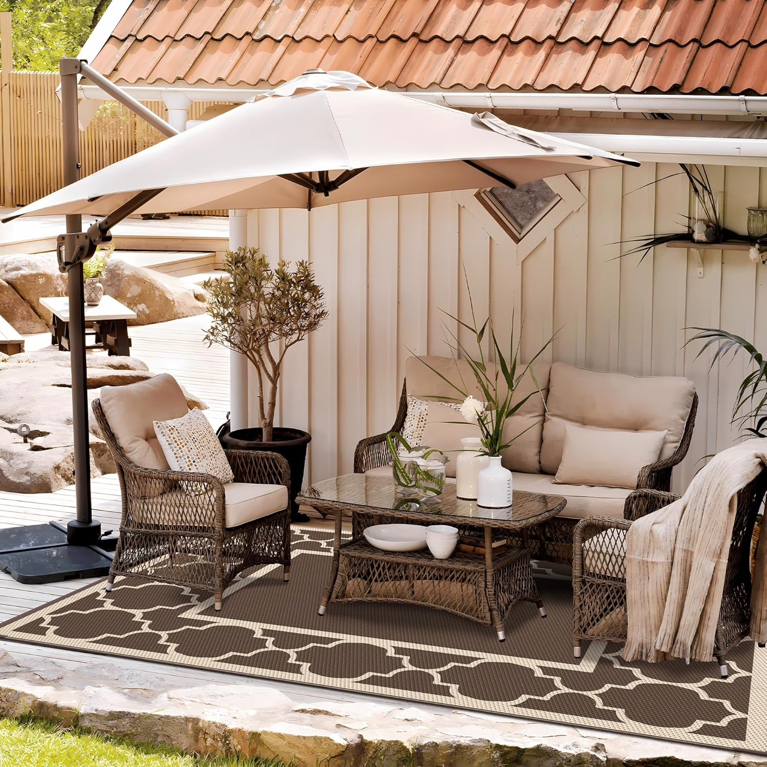 - Versatile Settings:Upgraded polypropylene ensures breathability and fast drying in this outdoor rug waterproof design. Perfect for the patio, deck, backyard, garden, porch, beach, RV, picnic, or camping. Elevate your outdoor experience with GENIMO—whether you're furnishing a peaceful retreat with pamapic outdoor furniture or outfitting your weekend getaway with stylish rv essentials.Also great as fall outdoor decor or a key element in your fall decor transformation