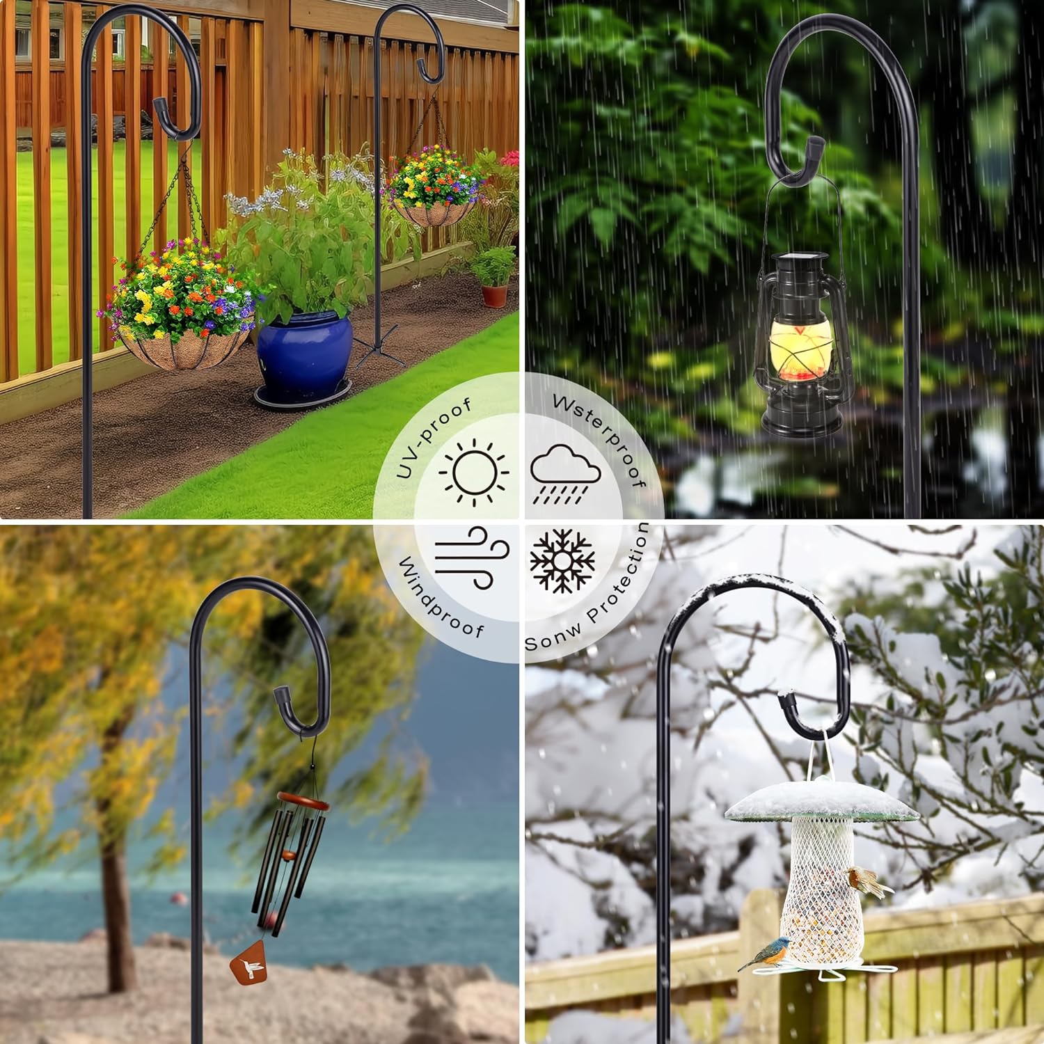 - 【Upgraded in Stability & 5 Base Prongs】Compared to other similar hooks in the market, our heavy duty shepherds hooks have upgraded with 4 extra long and double-forked base prongs to be total 5 prongs which makes it the strongest garden hook in the market and maintain a fixed, upright posture while remaining firmly planted in the ground without easily falling down.