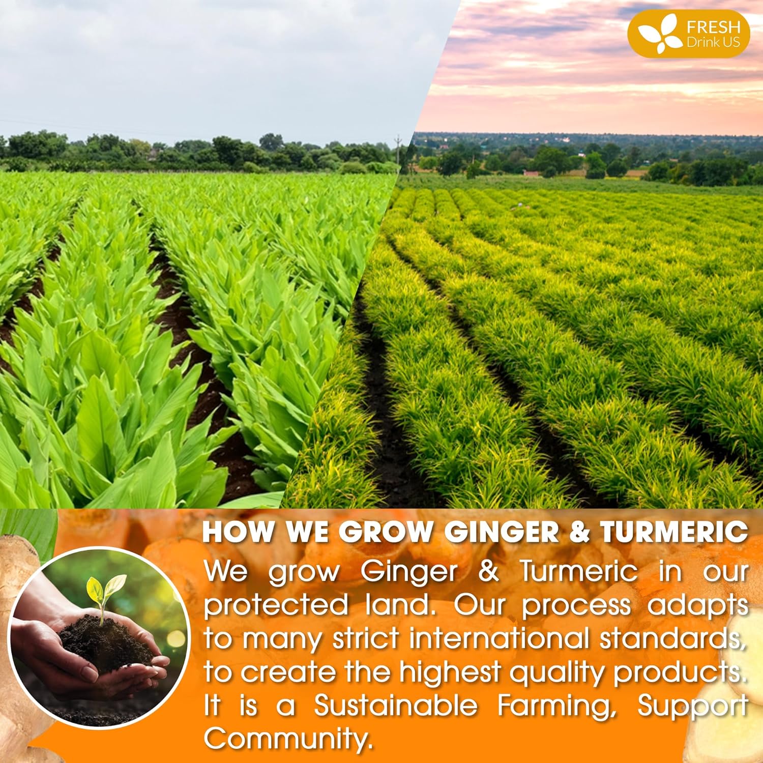 - ☘️ A SUSTAINABLE FARMING TO SUPPORT COMMUNITY: Our experienced farmers adopt methods that minimize the environmental impact of agriculture. We follow strict international standards with No Pesticides or Herbicides used on the ingredients. By consuming these Turmeric and Ginger tea bags, you are contributing to the long-term well-being of both people and the planet.