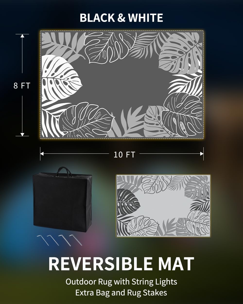 - Reversible&Wide Use: Outdoor rug featuring advanced black surface and visually expanding white side, patio rug creates perfect outdoor decor for relaxation and entertainment. The delicate flower pattern adds personality, making it ideal for gardens, patios, balconies, backyards, beaches, and indoor areas. Available in sizes: 5x8, 6x9, 8x10 and 9x12.