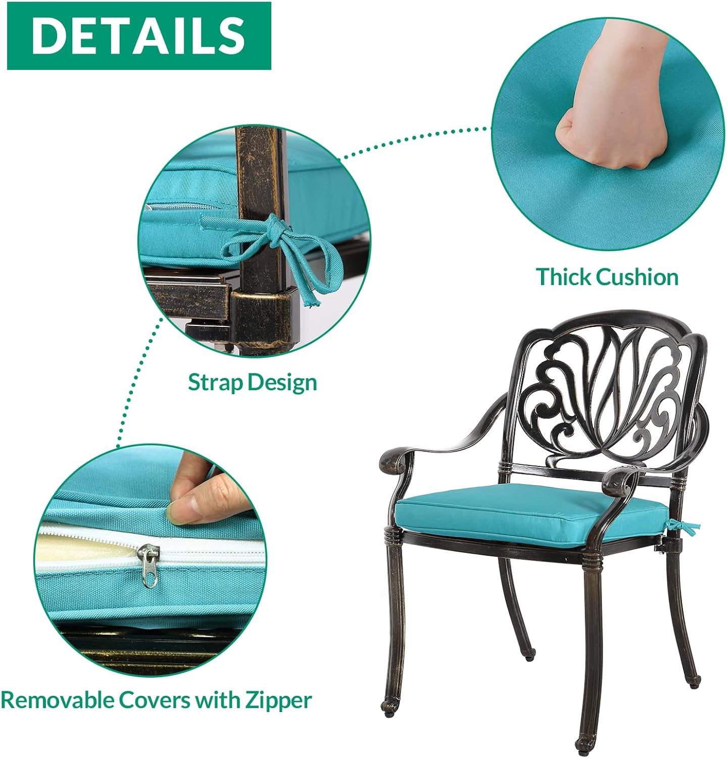 - 【STURDY & DURABLE 】 - Made with rust-resistant and weather-resistant cast aluminum frames, this conversation set is produced with high-performance powder coating, which protects it from rust, scratches and harmful UV rays. The cushions are made of quality fabrics that are quick-drying and maintain their original shape. Ergonomically designed for comfort and durability for long lasting use to enjoy for many years.