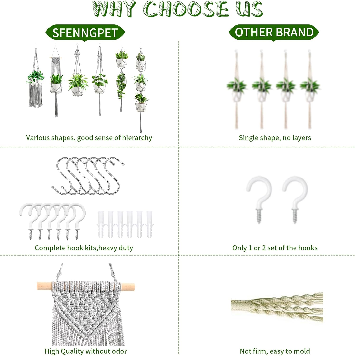- VALUE PRESENT PACKAGE: Macrame plant hanger included six Different Sizes Crochet Plant Hangers, six“S” Hook, six Ceiling Hook, six Expansion Tube. Unique creative design, modern, retro style hanging plant add the perfect touch to your room and living room, you can hang indoor plant hangers on the ceiling in the living room, bathroom, bedroom and office. Great for indoor and outdoor décor