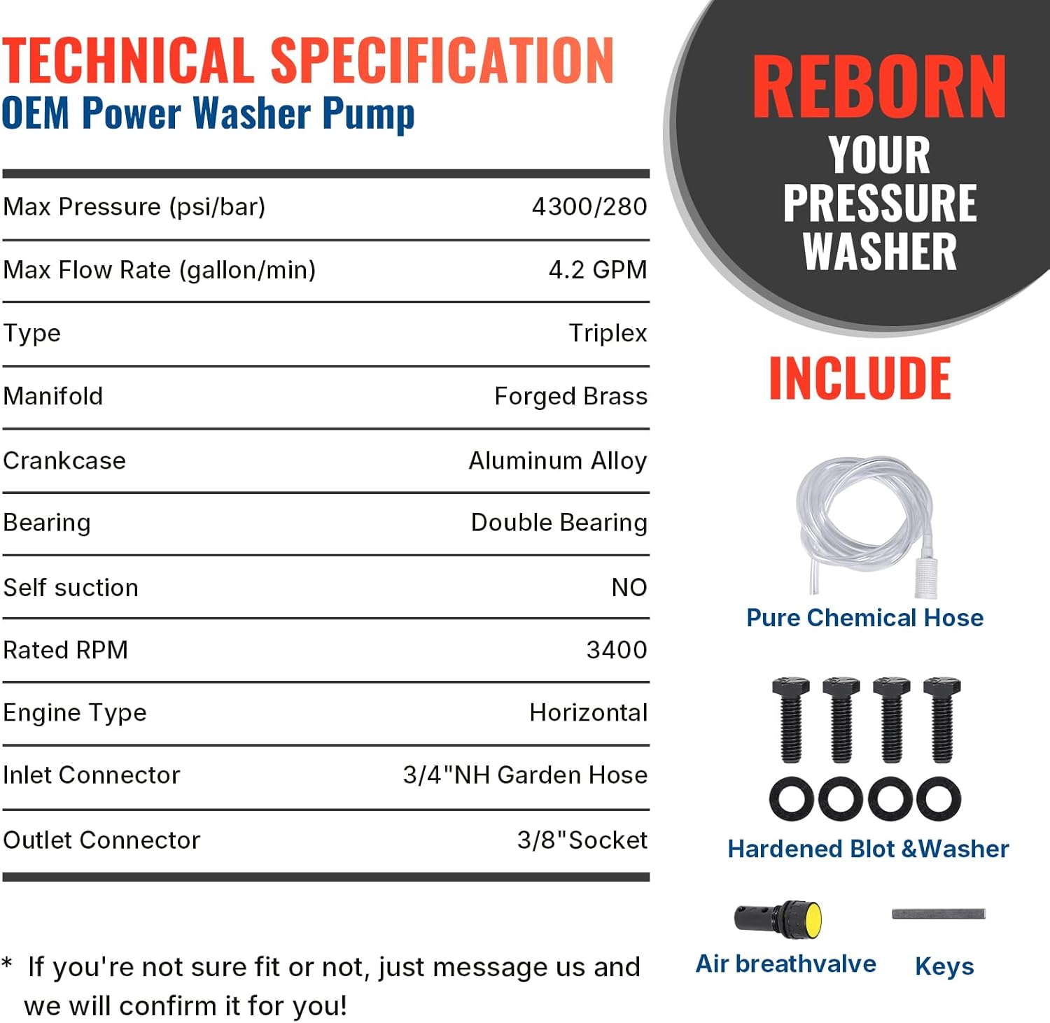 - [Great Compatible] Easy Replacement for âºSimpson: 90034,90039,90038,41114, 41096, 41115,41113, 41028, 41030, 41032, 41034 âºHonda GX340 GX390 GX270 (Only fit 1" shaft pressure washer pump) âºAR: RSV4G40-PKG, RSV4G40HD-F40EZ, RG 2125HN, RG 1528HN, SLPHP4040-402 âºGeneral pump: TS2021, EZ4040G, EZ4040, WS202 âºOTHERS: COMET RW 4040 S, Mi-T-M 3-0308, and more. If you are not sure which pump you need, please message us any time!