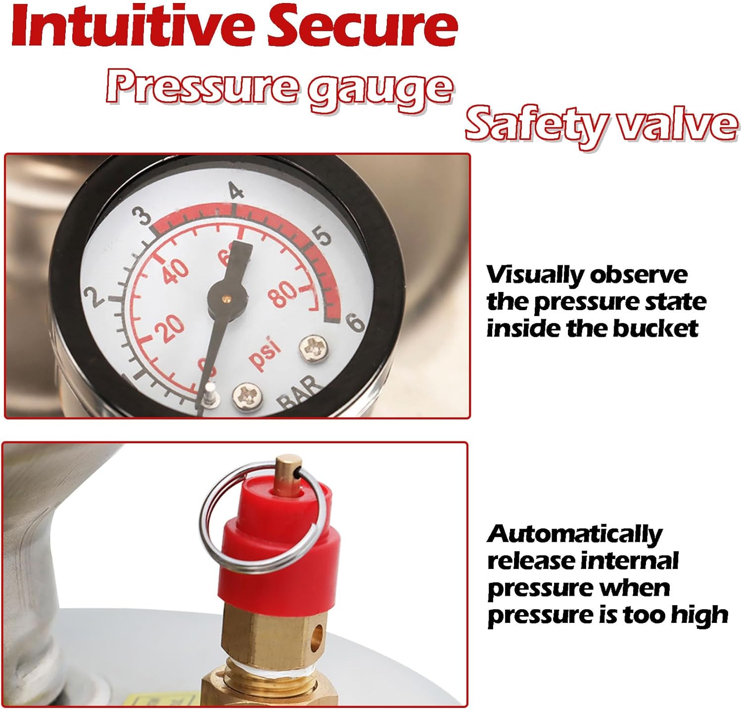 - Comprehensive design - adjustable brass nozzle for direct spraying, achieving fine mist. A pressure gauge can visually display the pressure inside the tank. Valves can automatically release internal pressure when the pressure is too high, keeping the pressure within the correct range.