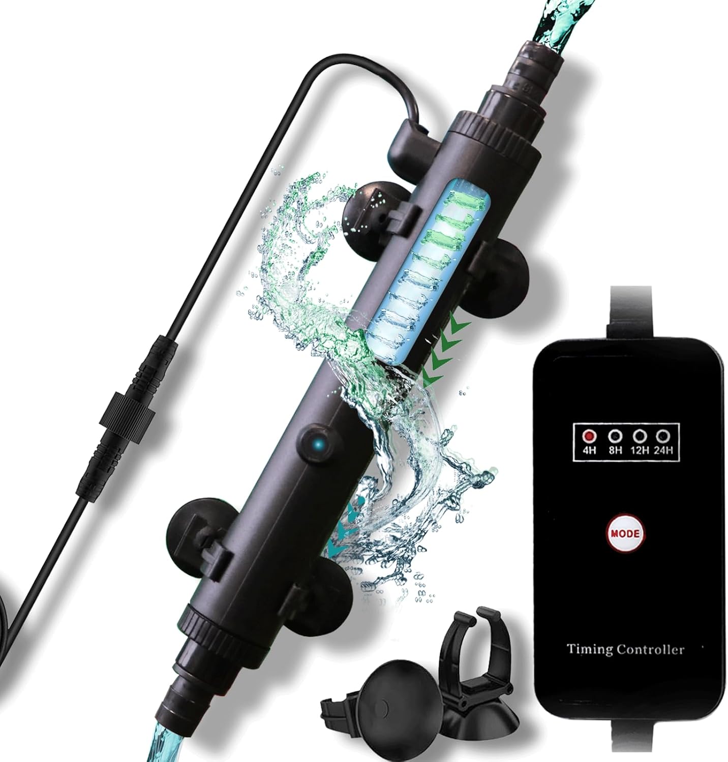 - 【Intelligent Timing Function】The aquarium filter includes a unique one-click timing function that is intelligent. Users can easily select from four different timing settings: 4 hours, 8 hours, 12 hours, and 24 hours, without daily adjustments. This feature enables personalized operations to meet various needs. Please refrain from touching the lampshade during the disinfection process.