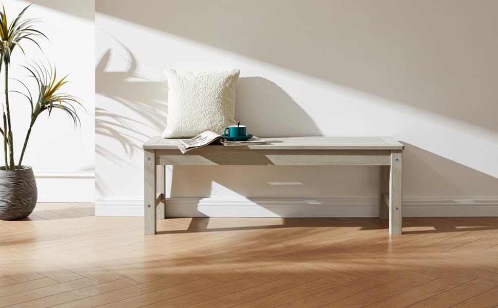 - Easy to Assemble- The most simplified installation process, you only need to screw 4 identical screws into the pre-drilled holes. The park backless bench is heavy. It is recommended that two people install it together.