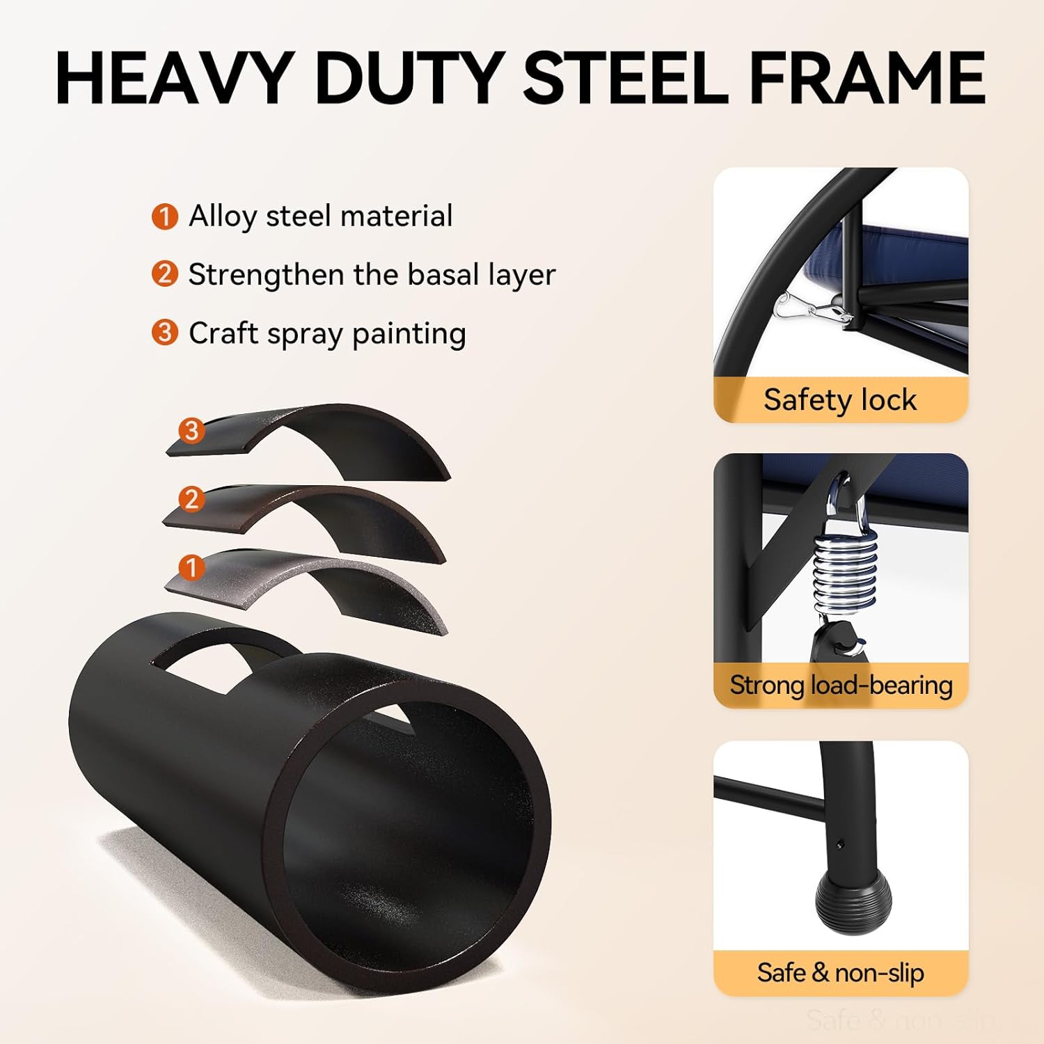 3-Seat Patio Swing Chair Outdoor Heavy Duty Steel Frame with Adjustable Canopy Removable Cushions - All Weather Porch Swings Glider for Backyard, Garden, Poolside - Navy Blue
