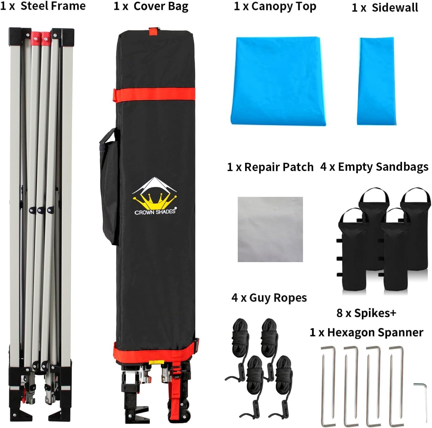 CROWN SHADES 8x8 Pop Up Canopy with 1 Side Wall - Beach Tent with One Push Setup - Outdoor Sun Shade for Events, Parties, Camping - Gazebo with STO-N-Go Cover Bag (Sky Blue)