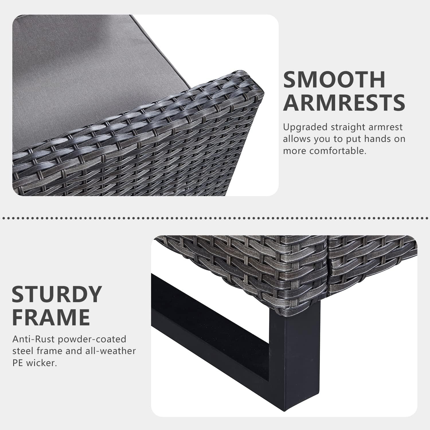 - 【Comfortable 4inch Thick Cushions】This outdoor furniture features deep and wide seats with 4-inch thick sponge-padded cushions,Offers good resilience, not easy to deform or slide, also protect your lumbar and offer a comfortable sitting experience.Water-repellent polyester cover with zipper,Easy to clean and keep.
