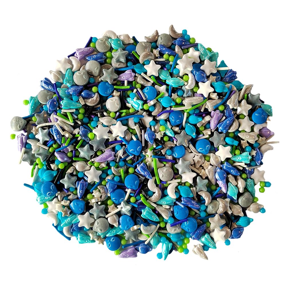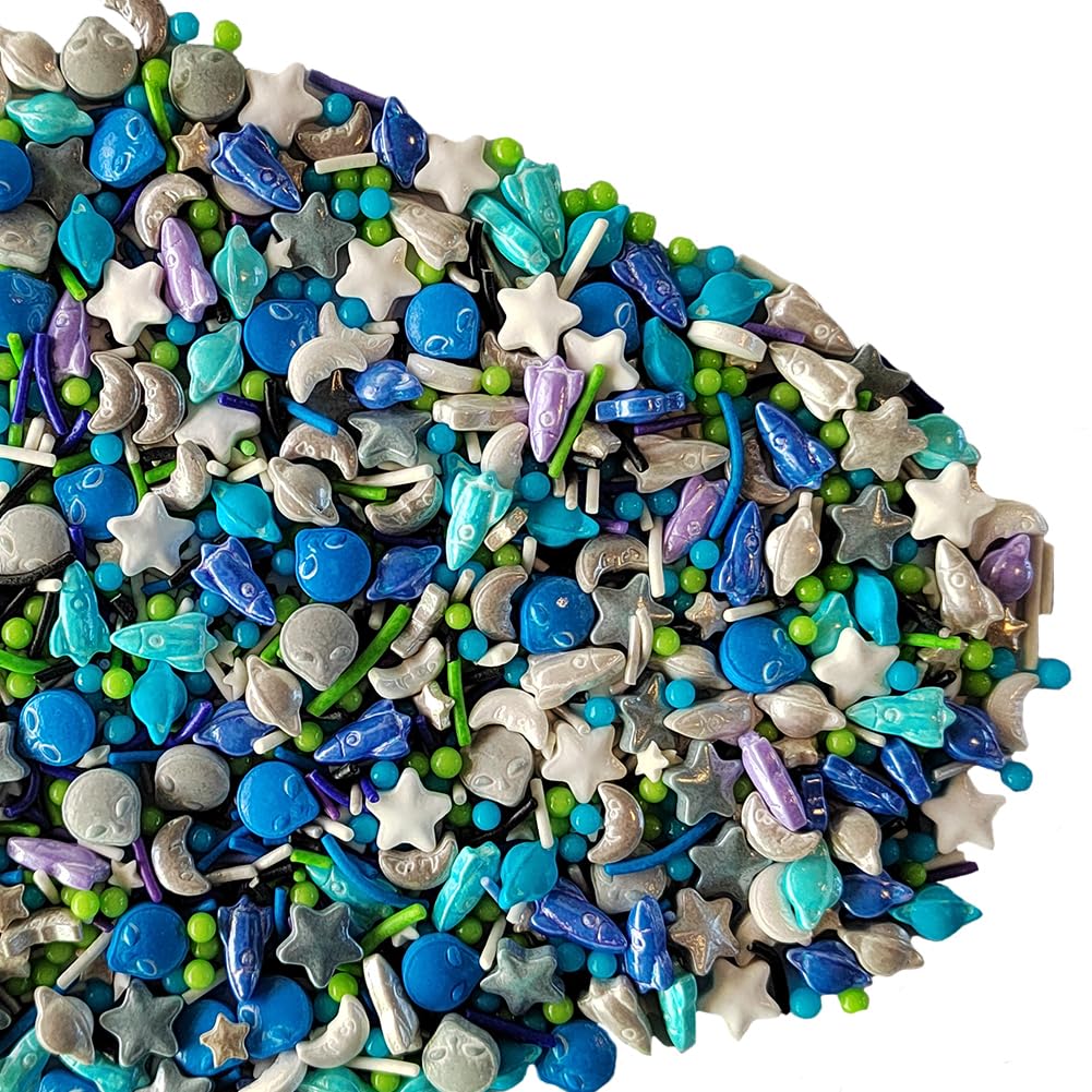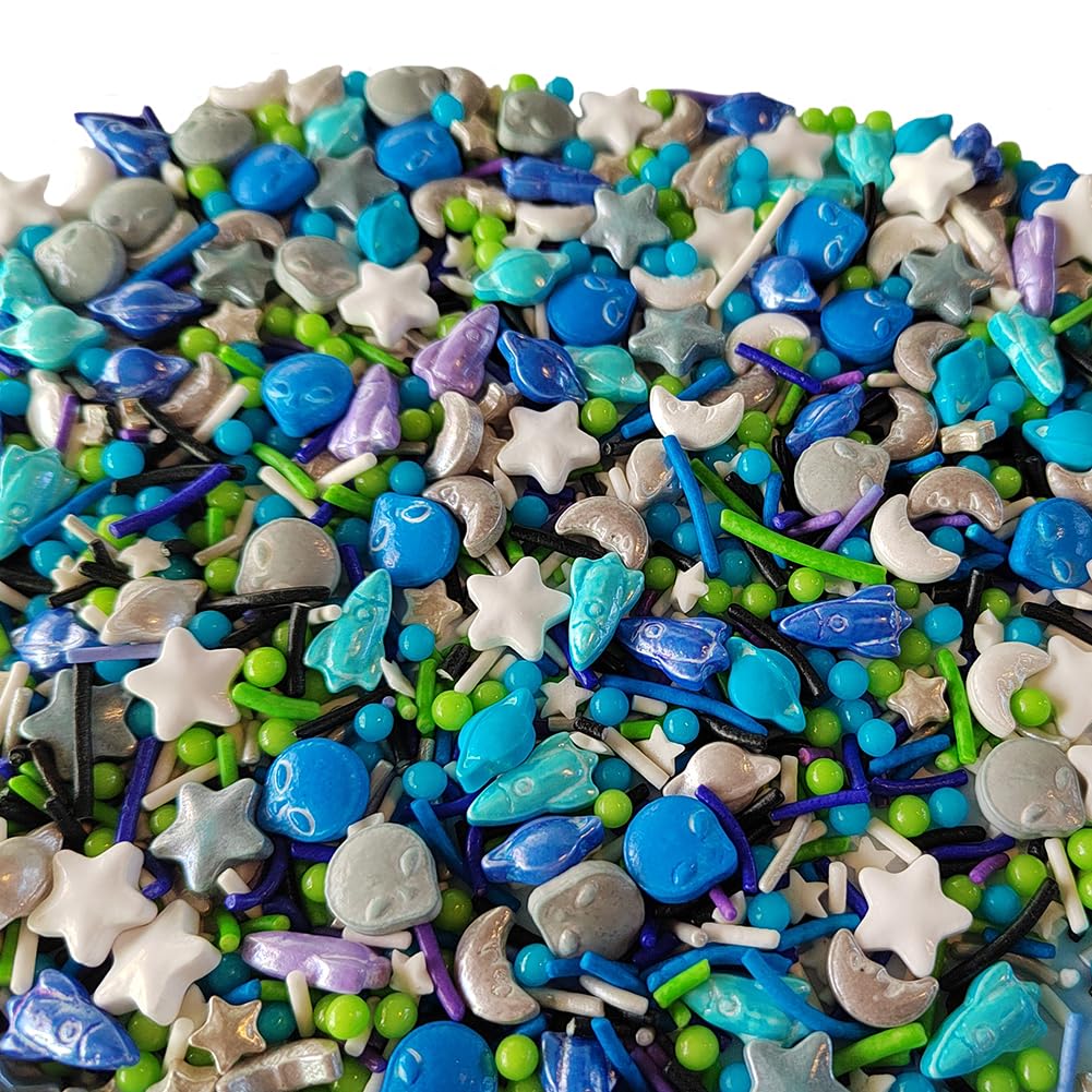 Homankit Edible Space Theme Sprinkles Alien Planet Moon Rocket Stars Sugar Sprinkle Baking Cake Cupcake Ice Cream Donut Decoration 3.53 Ounces