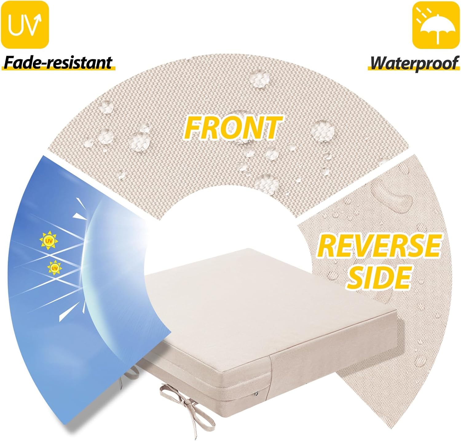 - Waterproof & Removable Cover: Durable, breathable polyester with a waterproof coating, UV protection, and fade resistance for lasting outdoor use. The zippered cover allows easy cleaning and replacement, with hidden zippers for a seamless look