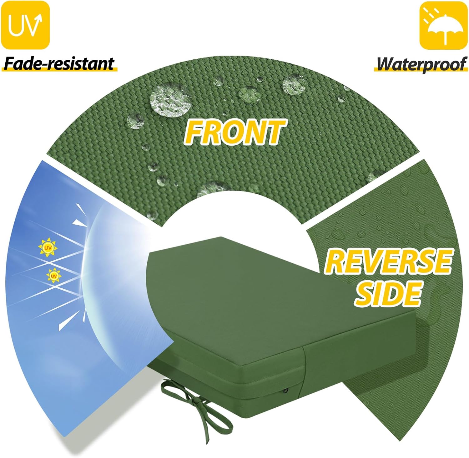 AAAAAcessories Outdoor Seat Cushions for Chairs, Waterproof, Fade-Resistant Patio Furniture Replacement Cushions, 20" x 18" x 3", Set of 2, Dark Moss Green