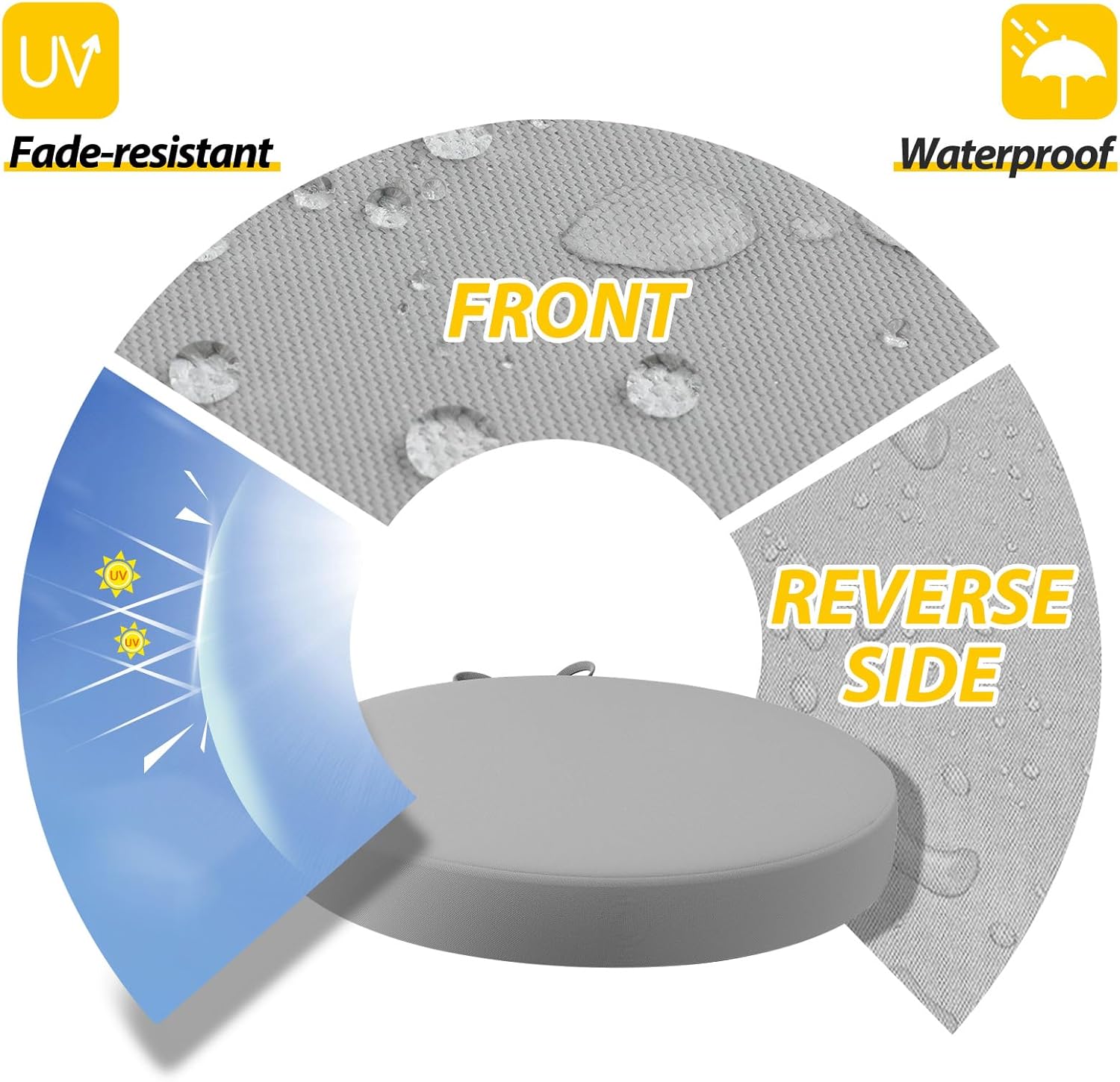 - Waterproof & Removable Cover: Durable, breathable polyester with a waterproof coating, UV protection, and fade resistance for lasting outdoor use. The zippered cover allows easy cleaning and replacement, with hidden zippers for a seamless look