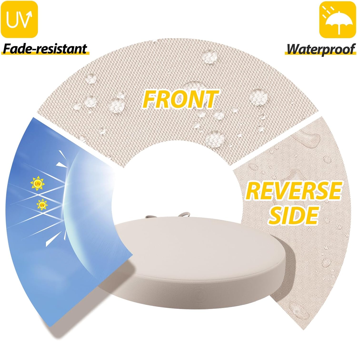 - Waterproof & Removable Cover: Durable, breathable polyester with a waterproof coating, UV protection, and fade resistance for lasting outdoor use. The zippered cover allows easy cleaning and replacement, with hidden zippers for a seamless look