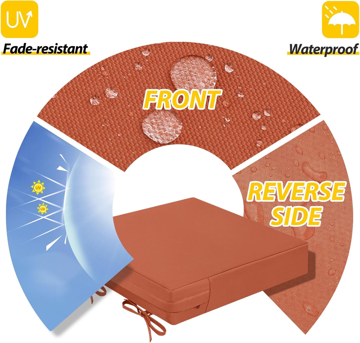 - Waterproof & Removable Cover: Durable, breathable polyester with a waterproof coating, UV protection, and fade resistance for lasting outdoor use. The zippered cover allows easy cleaning and replacement, with hidden zippers for a seamless look