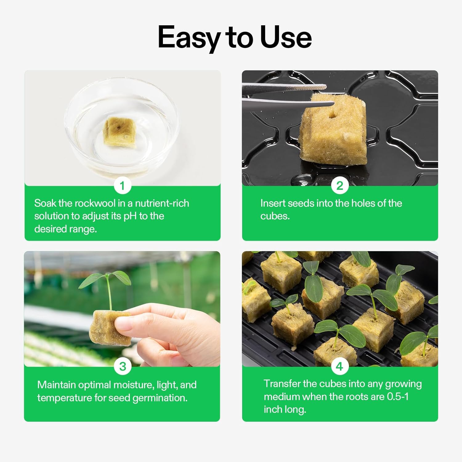 - Easy to Use & Observe: These light and fluffy rockwool cubes are easy to cut to any size; Each cube has a hole for your seeds or cuttings, and you can transfer the cubes to any medium when the roots develop; It is also easier to observe the growth on one sheet