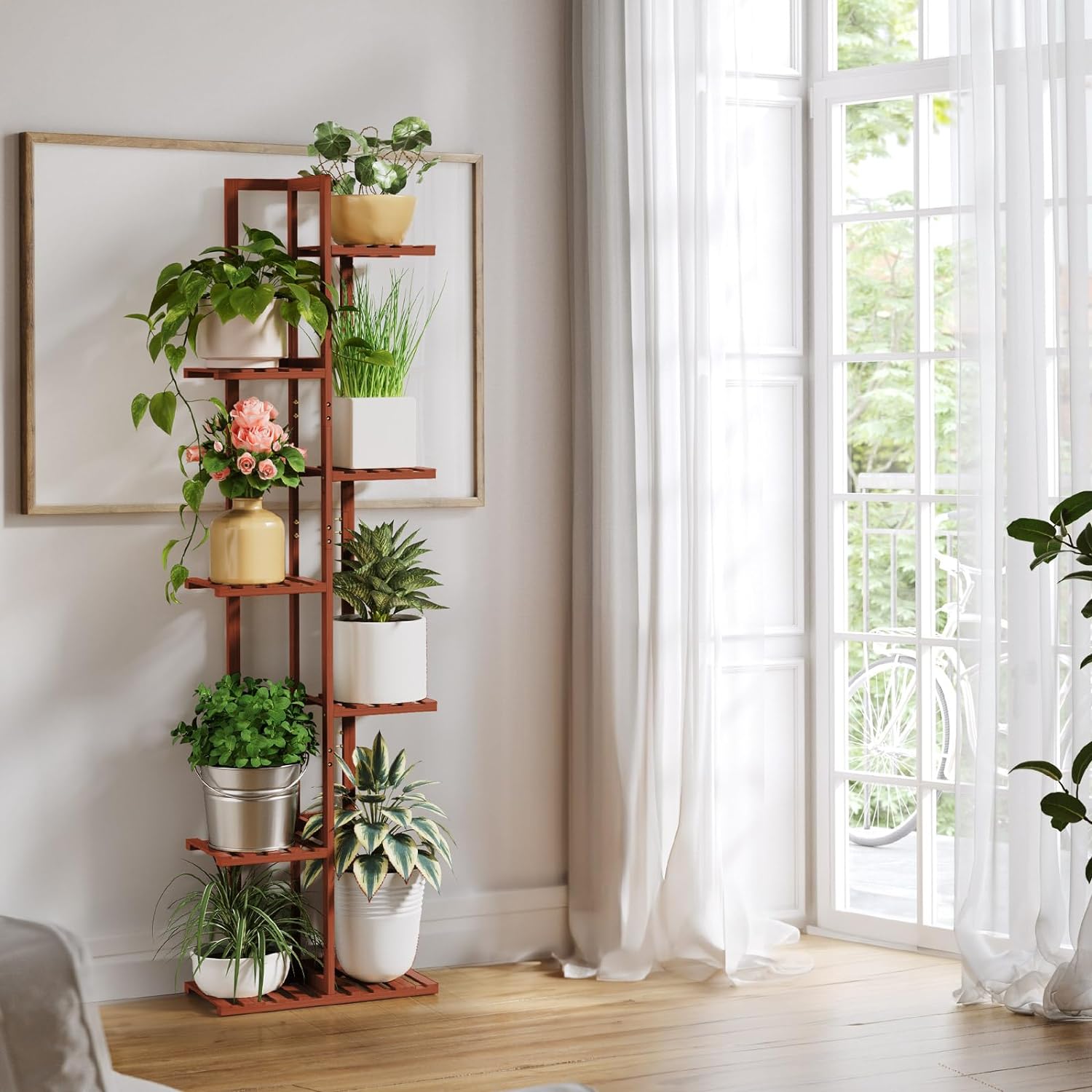 ROSSNY 55 Inch Tall Plant Stand Indoor, 7 Tier 8 Potted Bamboo Plant Stands for Indoor Plants, Corner Plant Stand, Tiered Plant Stands, Plant Shelf For Indoor, Planter Holder for Multiple Plants Indoor, Brown