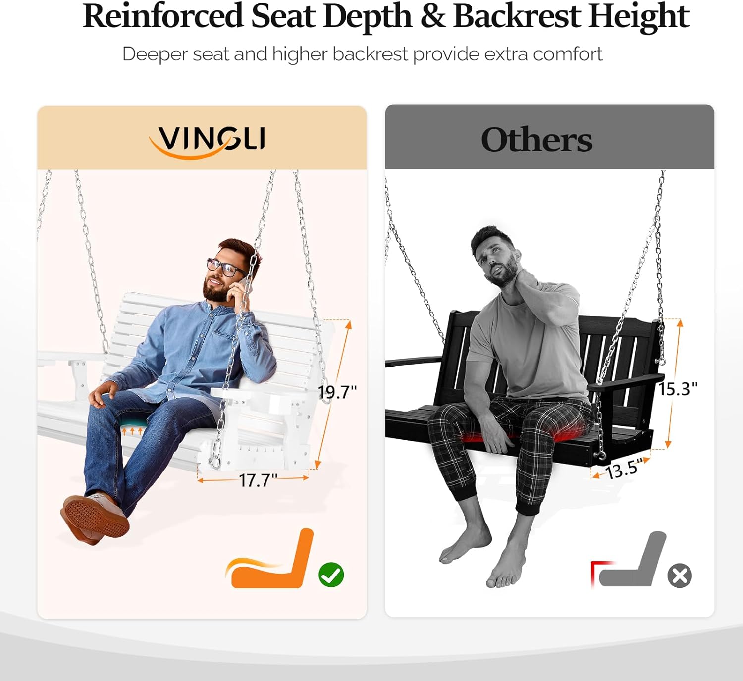 - Upgraded Product Size - We add the seat depth and backrest height on our swing bench, only to better support your body and bring more relaxation. Seat Depth = 21.7โ and Backrest Height = 19.7โ