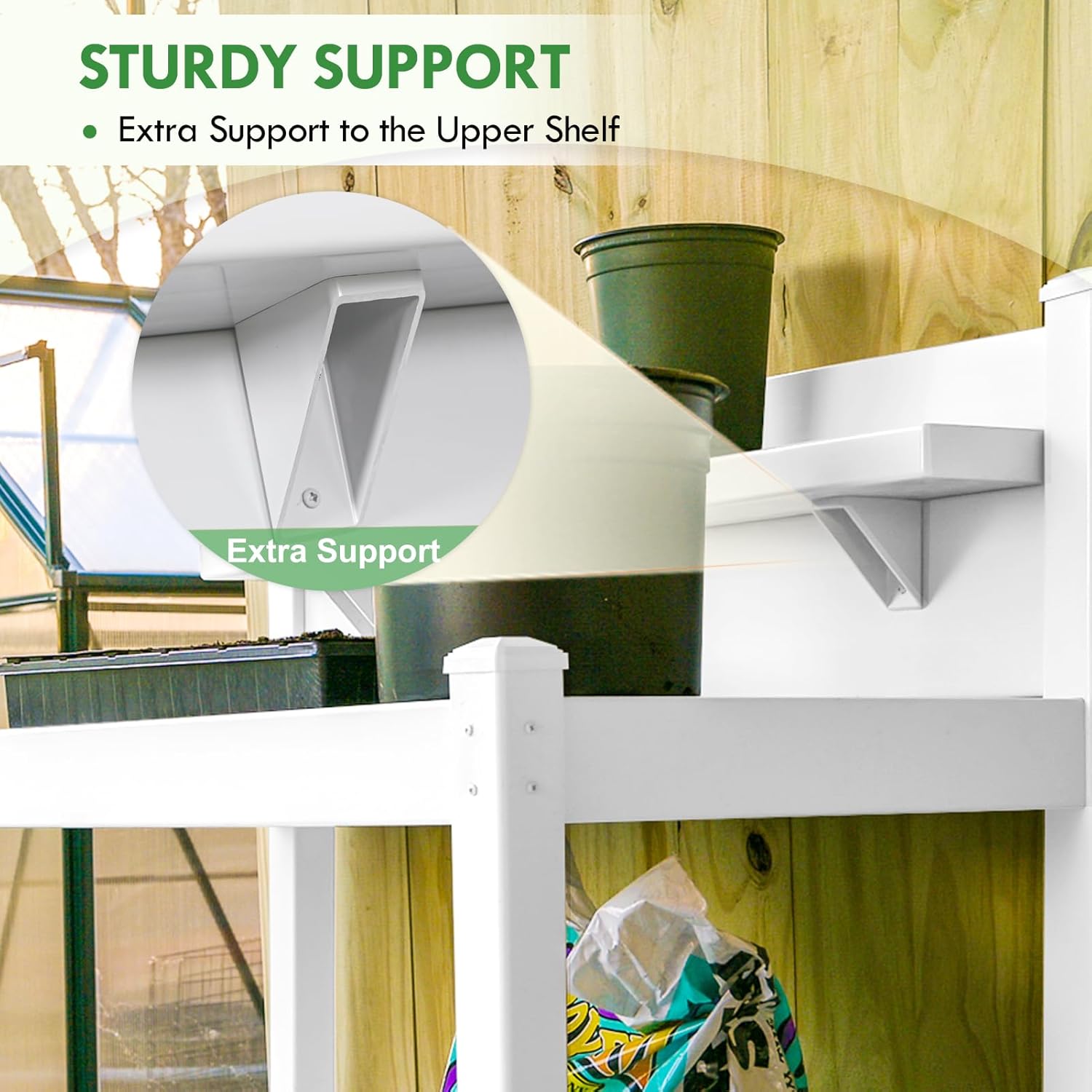 - SPACIOUS WORKING AREA: The workstation table provides ample room for you to work. The spacious table top is perfect for planting seeds and repotting plants. The upper shelf can be used to store your seeds, small plants, fertilizers, and gardening supplies. Weight capacity of the table top is 110 lbs.