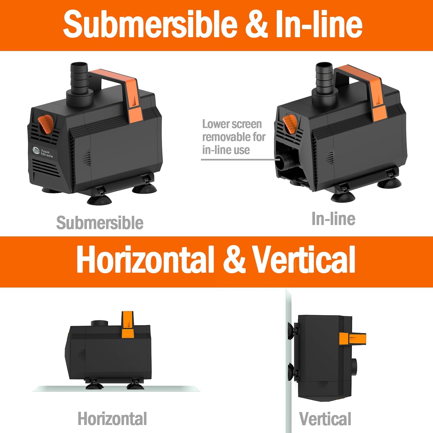 AquaMiracle 1050GPH Aquarium Water Pumps (4000L/H, 55W) Fountain Pump Pond Pump Submersible Water Pump with Flow Control for Fountain, Waterfall, Statuary, Filtration, Water feature, Hydroponics