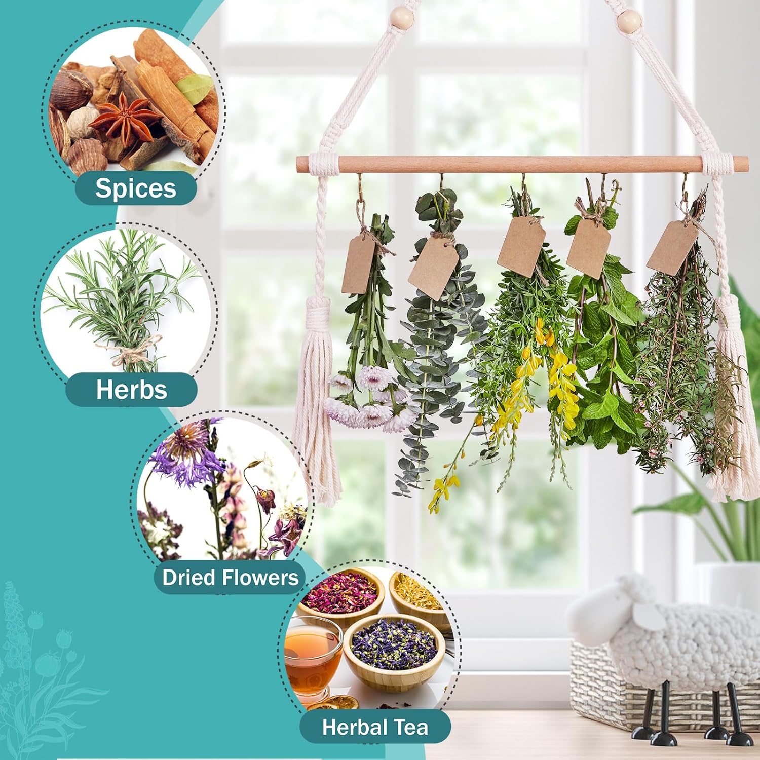 - Our Use of Drying Rack Plants to Dry Herbs, so that your home filled with herbs, sage, flowers and other plant fragrance, become a Bohemian home exquisite decoration. Can be used as plant lovers, housewarming, Mother's Day and other holiday gifts.