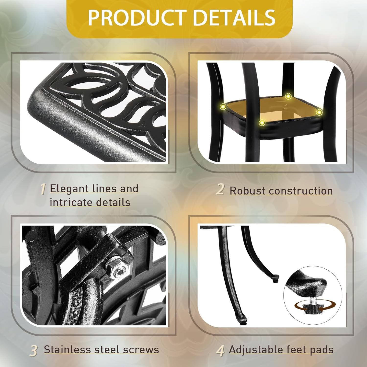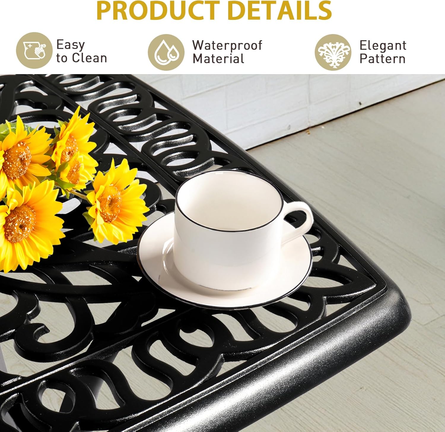 - PREMIUM CAST ALUMINUM: Crafted from high-quality cast aluminum, this square bistro table is built to withstand the elements. With exceptional durability, weather resistance and rust-proof features, it ensures long-lasting outdoor enjoyment with minimal maintenance required