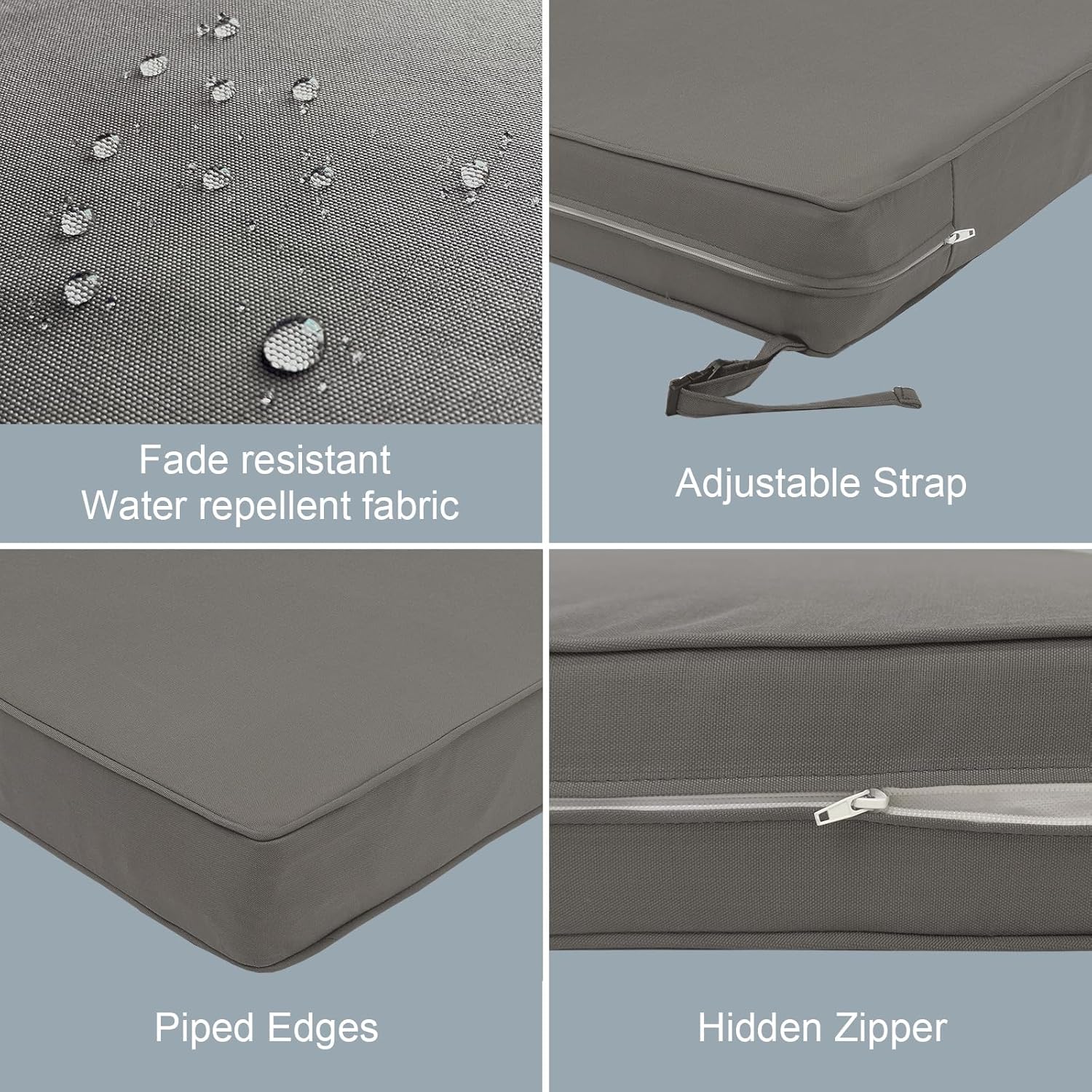 - NON-SLIP DESIGN: Each outdoor furniture cushion with adjustable straps help keep cushion securely attached to your chairs. You can sit back and relax without worrying about the cushions shifting or slipping