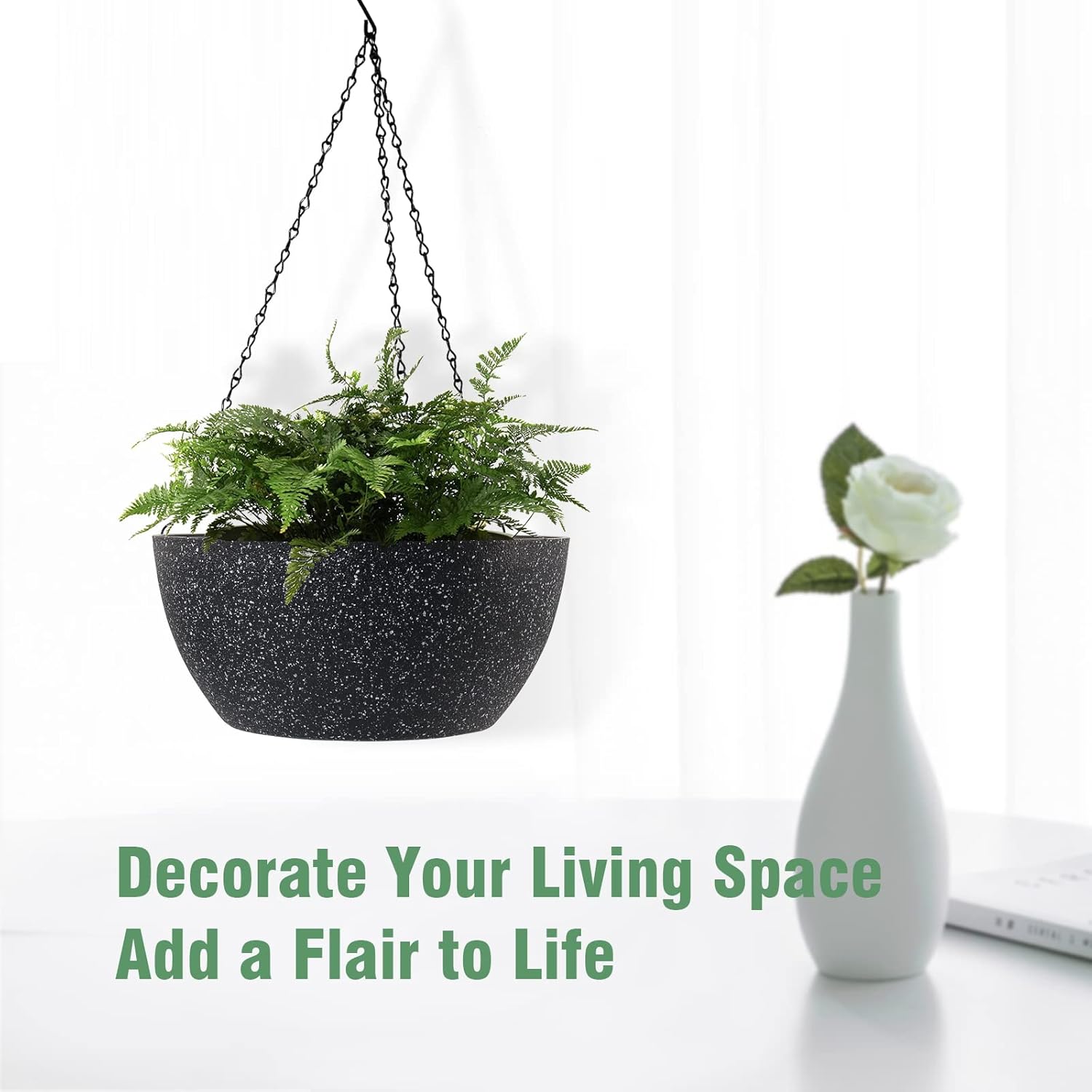 - Lightweight and Adjustable Hanger: Large hanging planters plant pots are made from brand new plastic, these planters are light enough to hang anywhere indoors and outdoors. Feel free to adjust the height to your liking with its sturdy heavy-duty triple chains hanger.