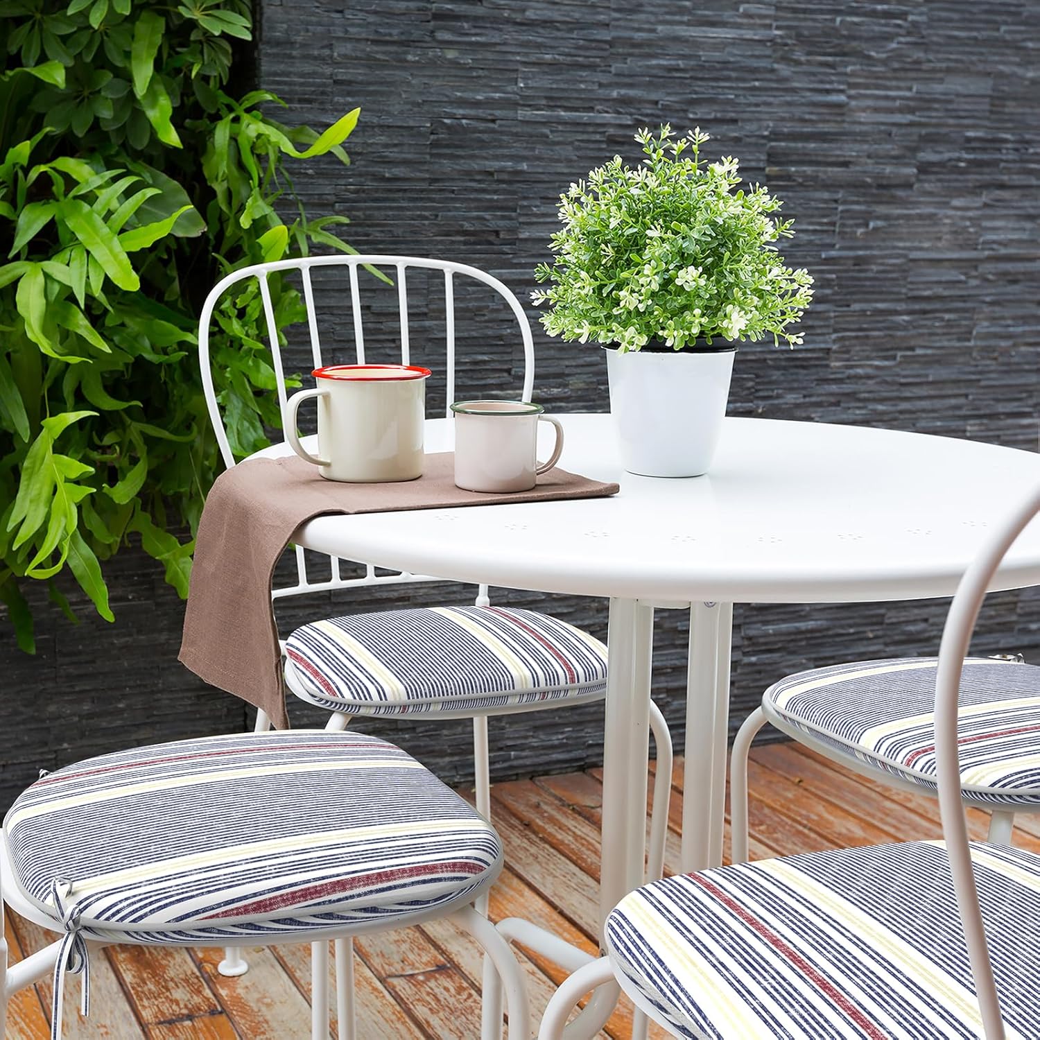 Indoor/Outdoor Chair Cushions 16x17 Inch, Patio Chair Cushions with Ties, All Weather Seat Cushions for Patio Furniture Home Garden Chair Use, Set of 4, Stripe Denim Blue