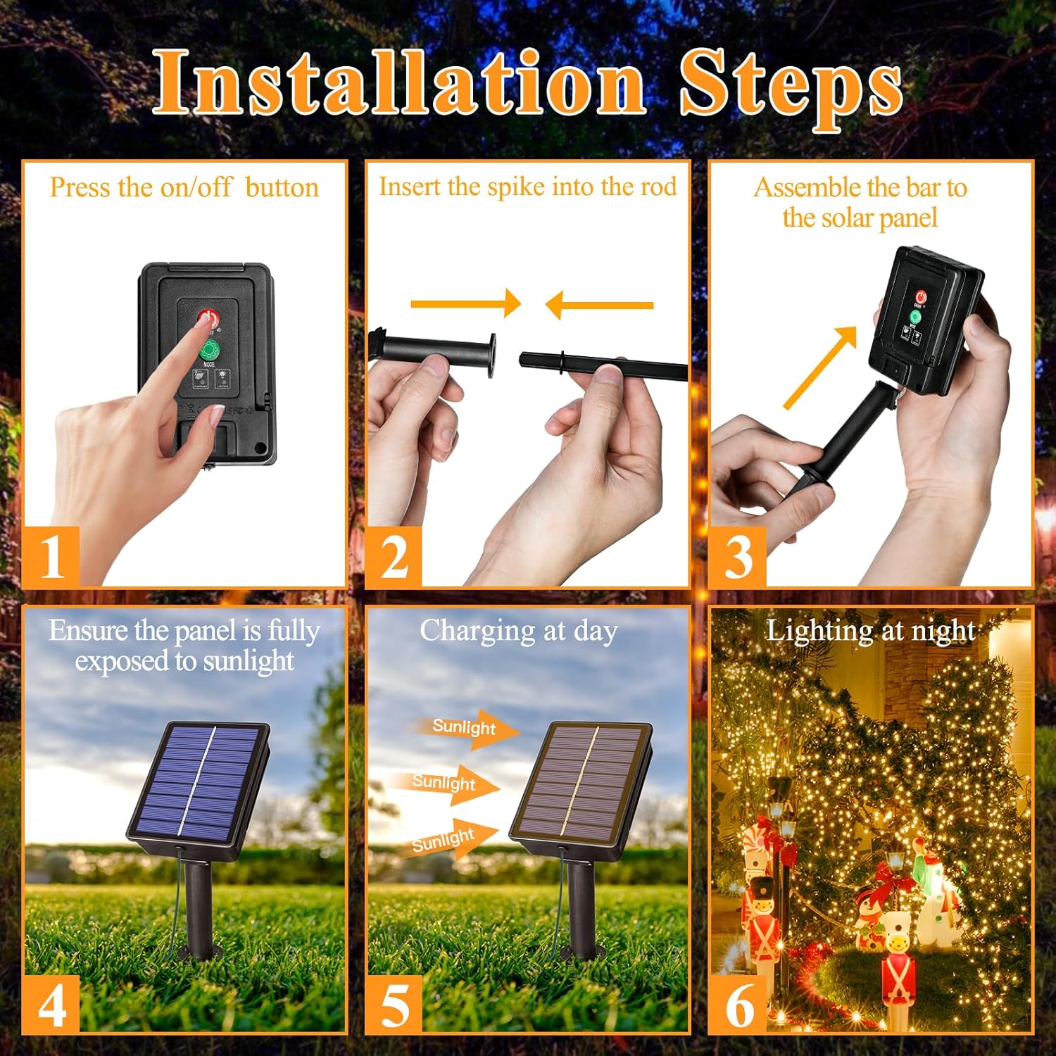- 【8 Lighting Modes and Memory】These solar string lights for outside offer 8 impressive lighting modes, including Steady ON, In Wave, Sequence, SLO-GLO, Chasing Flash, Fading, Flashing, and Combination. You can easily customize the lighting mode by press the panel bottom to match your mood and the occasion. Additionally, With built-in memory chip that saves your previous mode settings to avoid the need for daily resets
