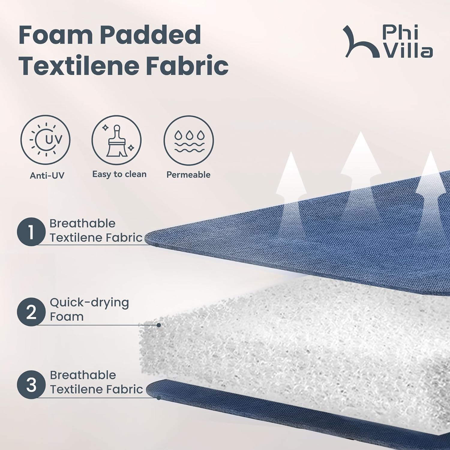 - Padded Back & Seat Design:Breathable Textilene sling fabric padded with fast dry foam on wide seat and high back add extra ease and comfort for your outdoor life