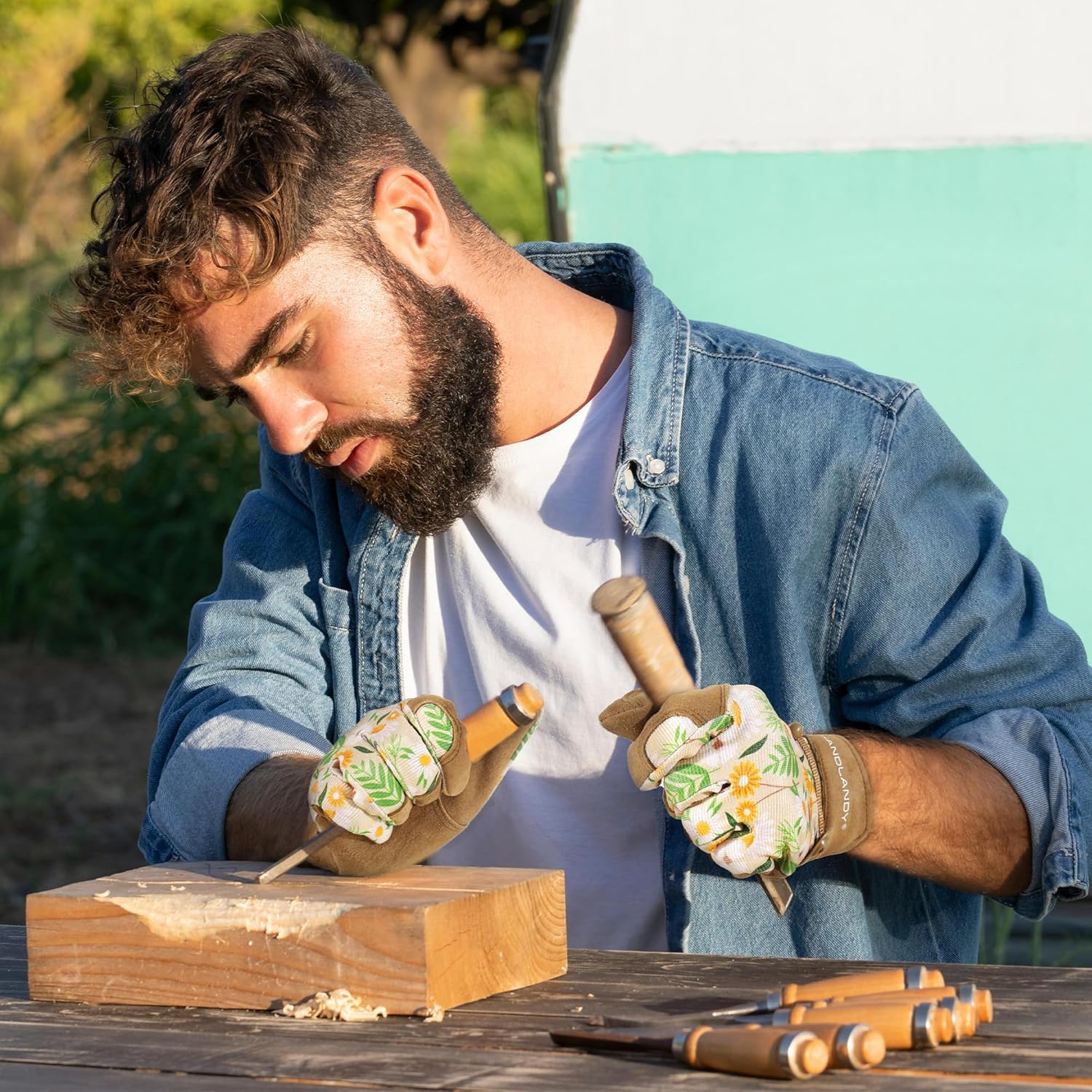 - Womens Floral Gardening Gloves - Soft deerskin leather palm, superior abrasion and puncture resistance provides perfect protection for your hands.