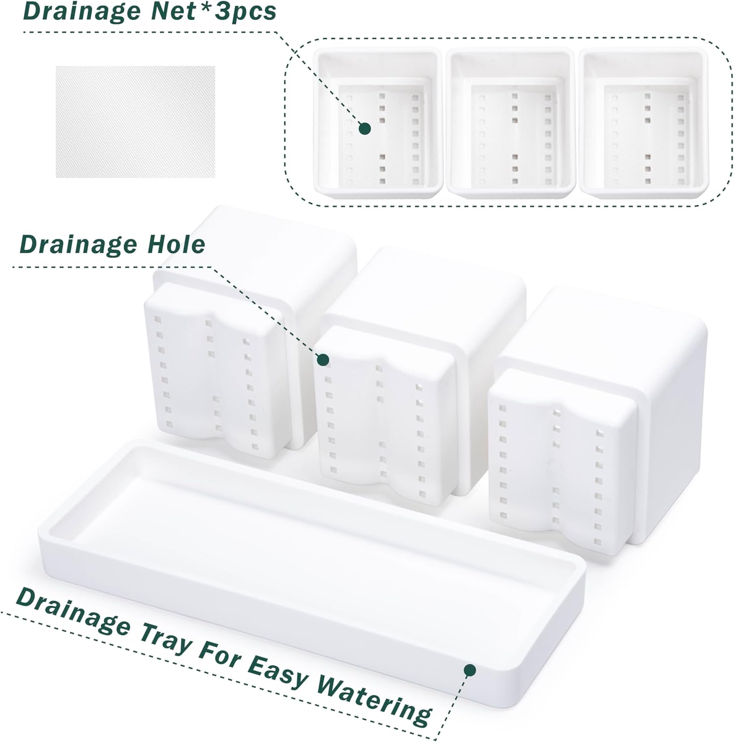 - Dimensions: Set of three herb pots and tray. Each herb box is 4” W x 4.5” H. Tray: 12” L x 4.5” W x 1.2” H, great size for planting herbs, vegetables and cactus etc.