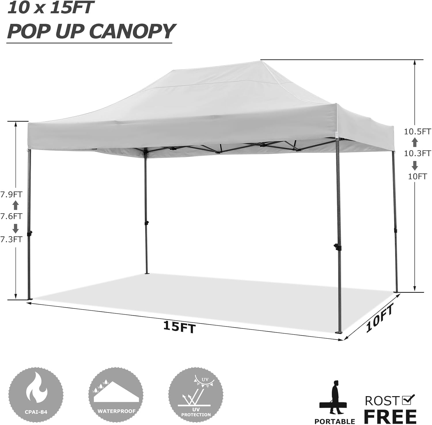 - 【Multiple Use Occasions】: COBIZI 10x15 Pop up Canopy for party, parties, for home garden, play ground, yards, farm beaches, commercial area, large gymnasiums and more. Suitable for trade shows, business, art shows parties, picnics, camping, sports or any outdoor events. Even ideal for Industrial Industry, Construction, Disaster Relief & More