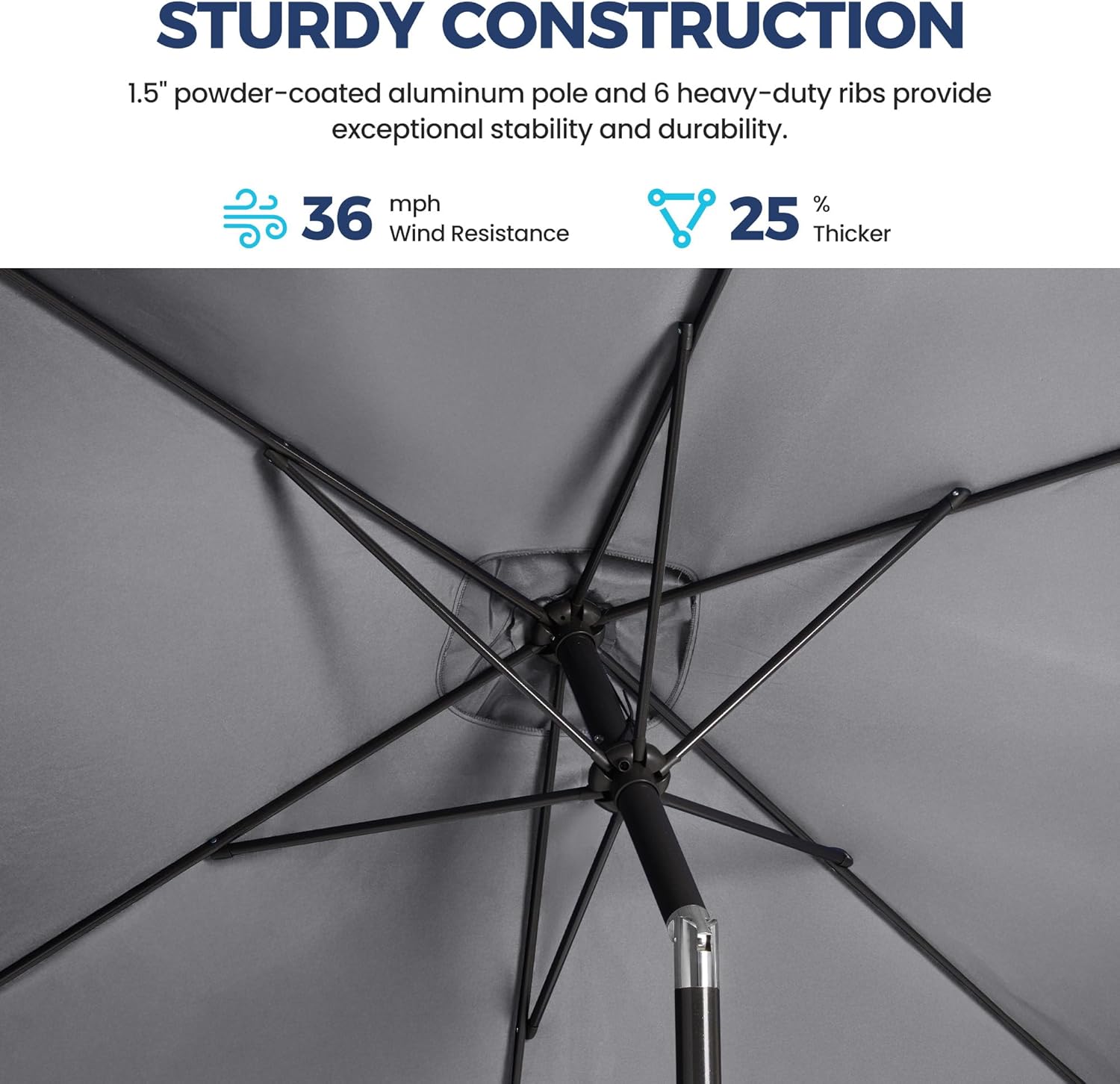 - STURDY FRAME: Beach umbrella sturdy 1.9" metal rods are powder-coated metal to prevent rusting or bending. Parasol thickened iron bones and six heavy-duty steel ribs provide additional support for durability and stability