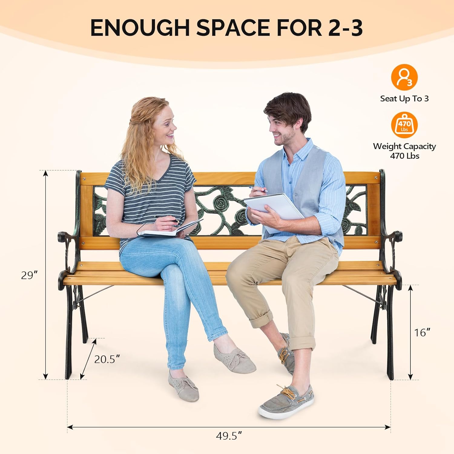 - Sturdy and Rust-Resistant: The metal bench outdoor is constructed from reinforced steel and hardwood, ensuring durability and long-term use. Its rust-resistant finish and PVC backrest pattern enhance resistance to weather elements, making it an ideal and lasting garden fixture