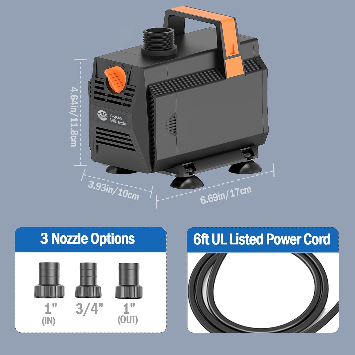 AquaMiracle 1050GPH Submersible Water Pump Pond Pump(4000L/H, 55W), Water Fountain Pump Aquarium Water Pump with Flow Control for Fish Tank, Waterfall, Statuary, Filtration, Water feature, Hydroponics