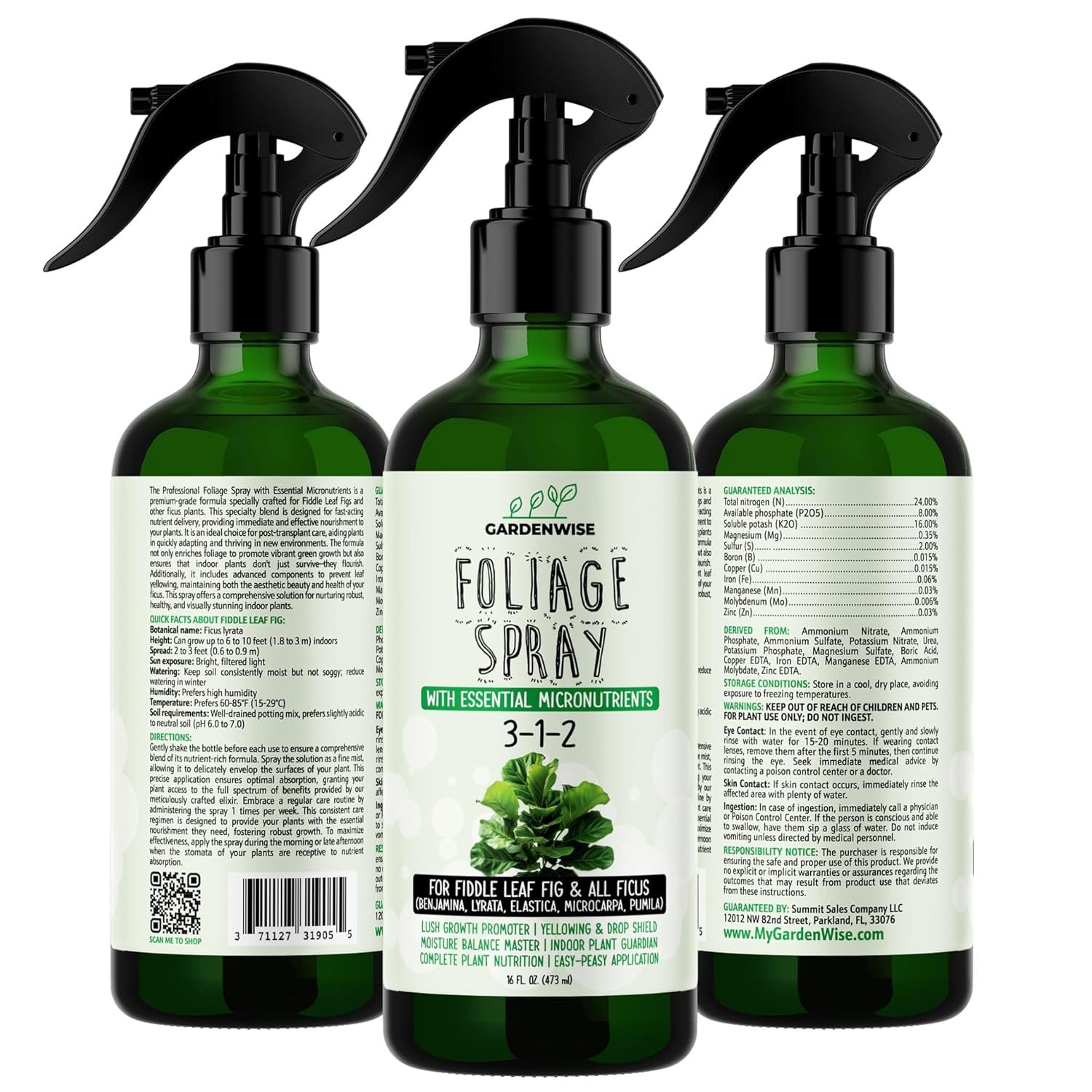 - πΏ READY-TO-USE FIDDLE LEAF FIG FORMULA: Our Fiddle Leaf Fig Spray Fertilizer is expertly crafted for Ficus lyrata, providing a perfect blend of nutrients for its large leaves and growth habits. Conveniently ready to use, simply spray it onto both sides of the leaves for immediate nourishment and care.