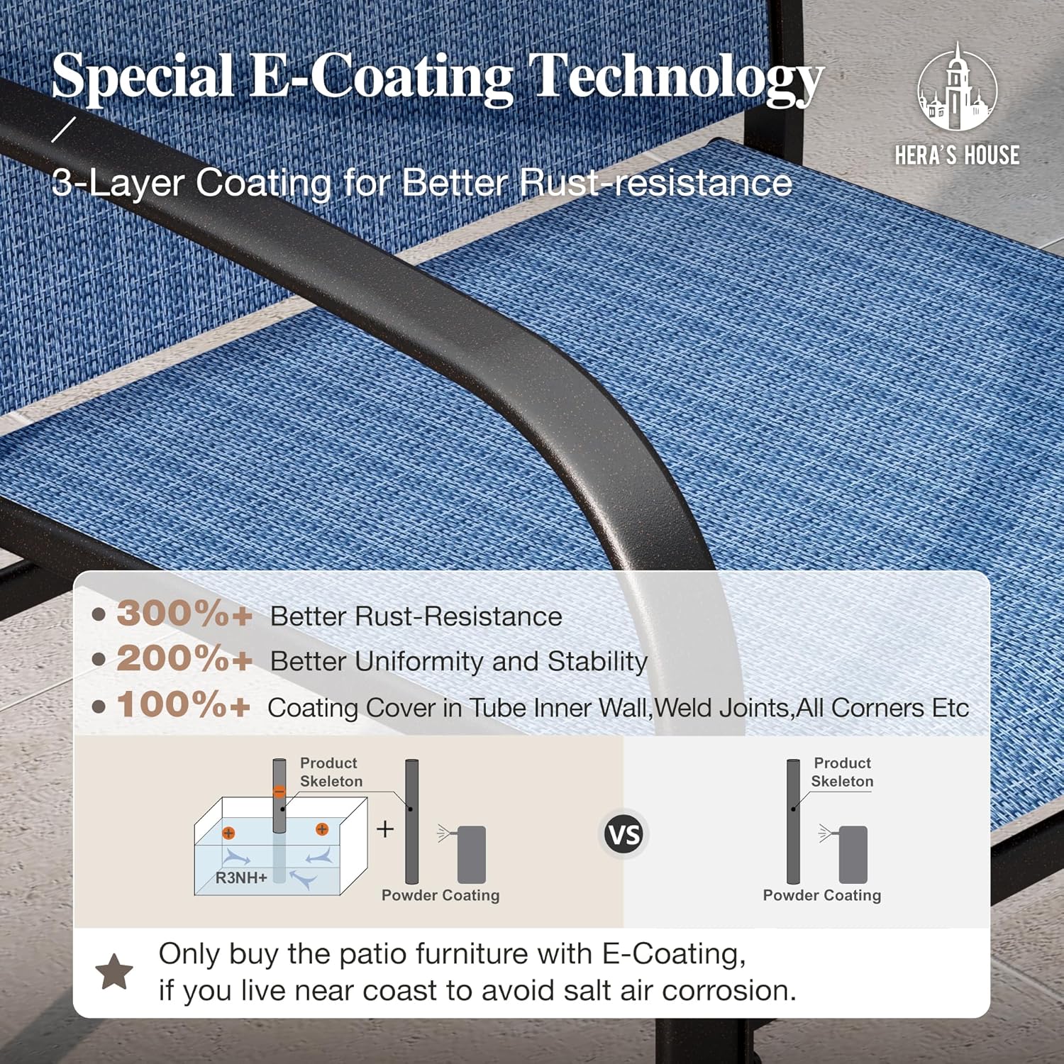 HERA'S HOUSE 5 Pieces Patio Dining Set, 4 x Blue Textilene Dining Chair, 42" Metal Round Dining Table, Patio Table and Chairs Set for Lawn Garden Backyard Deck