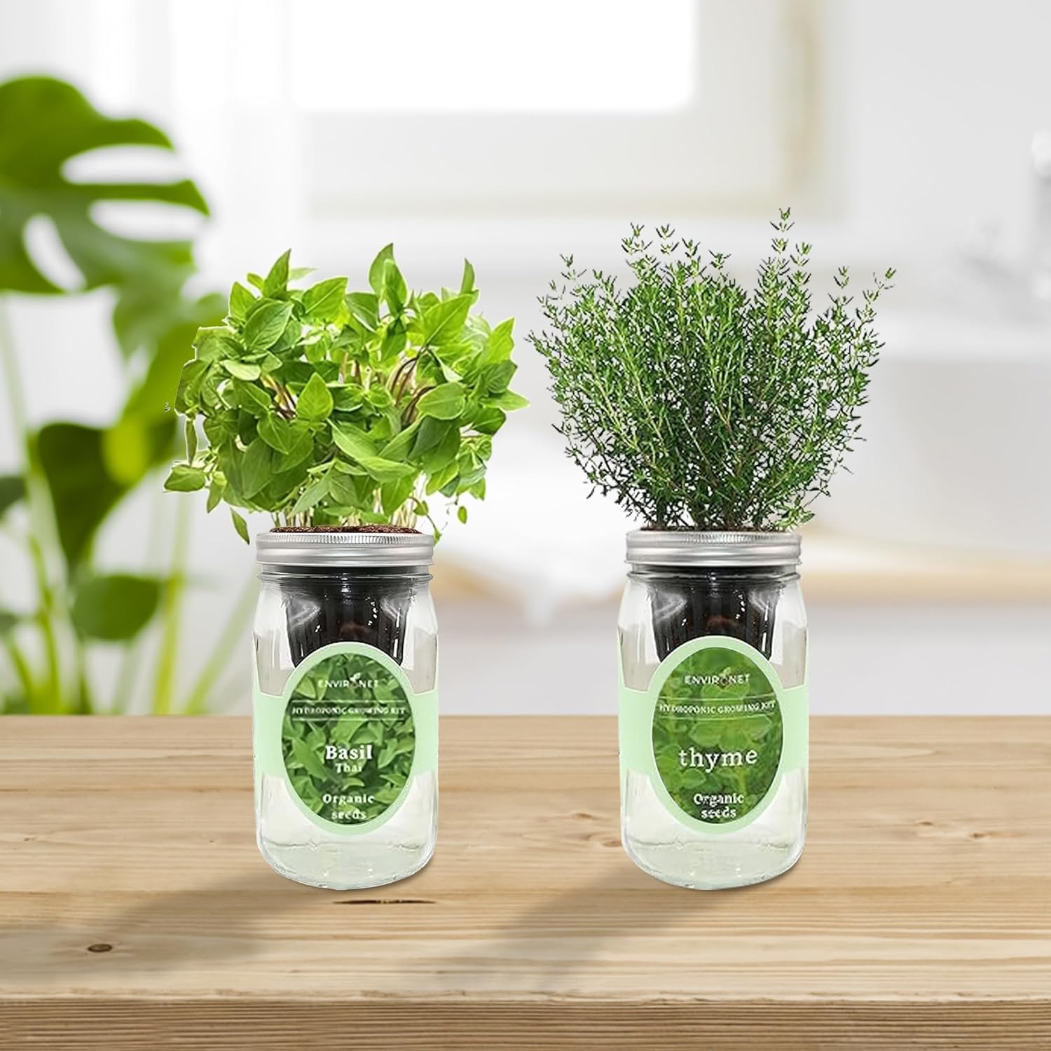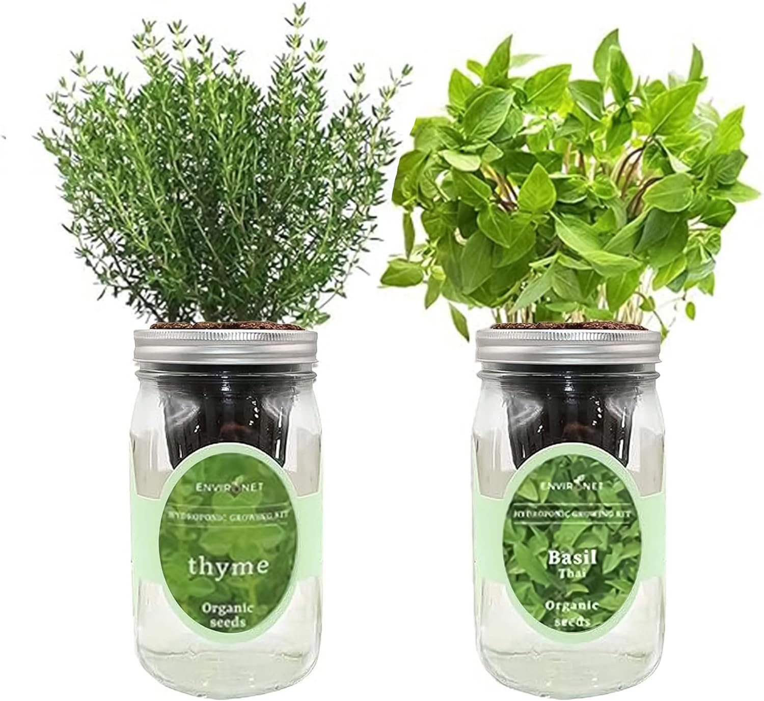 2-Pack Hydroponic Mason Jar Herb Garden Kit, Indoor Herb Garden Self-Watering Starter Kit (Thyme,Thai Basil)