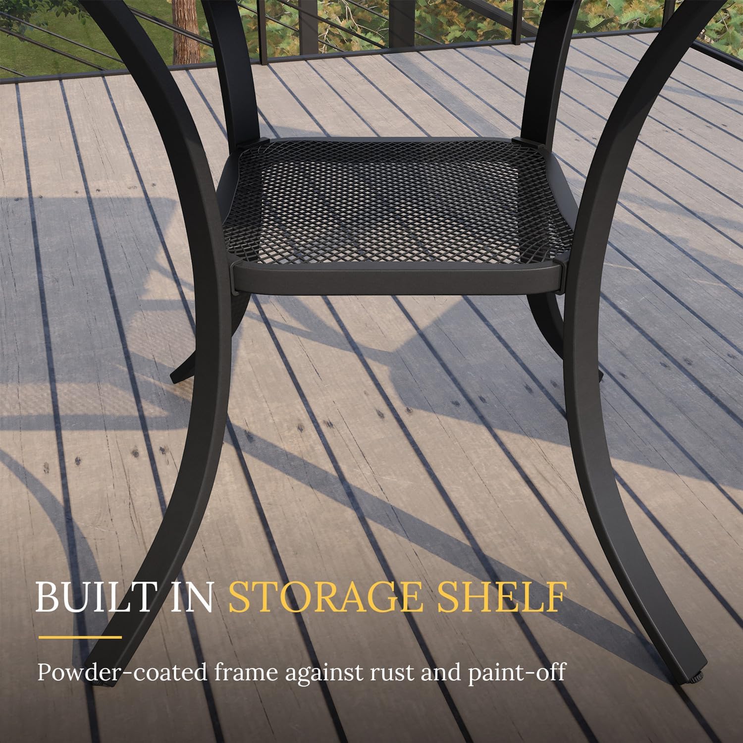 VICLLAX 27.5" Outdoor Round Patio Table for Lawn Garden, All Weather Metal Round Patio Dining Table with Storage Shelf, 2 Person Small Patio Table, Grey Wood-Like Tabletop