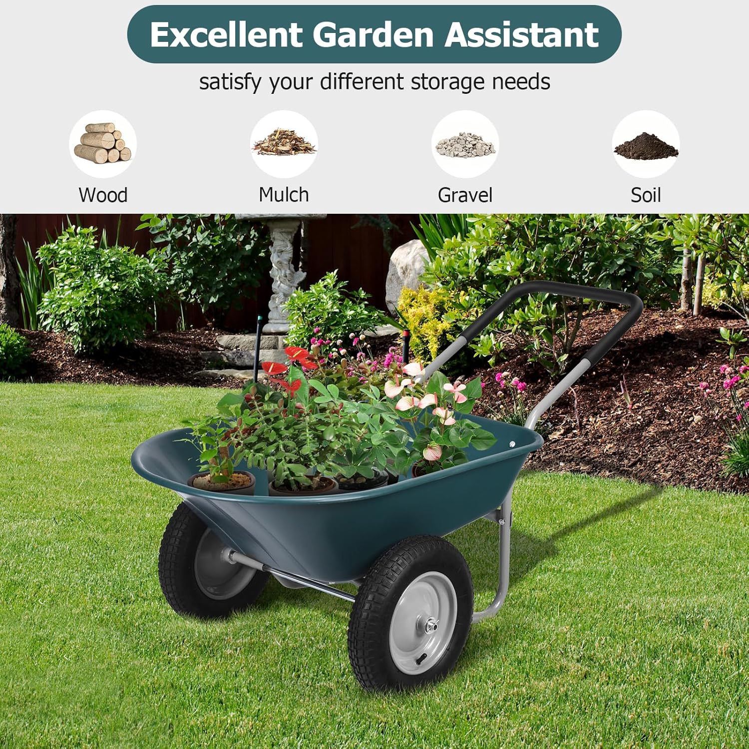 ERGOMASTER Dual-Wheel Wheelbarrow, Home Utility Garden Cart, 330 LBS Capacity, Large Heavy Duty Yard Cart for Gardening & Planting, Lawn, Farm, Construction Site, Green