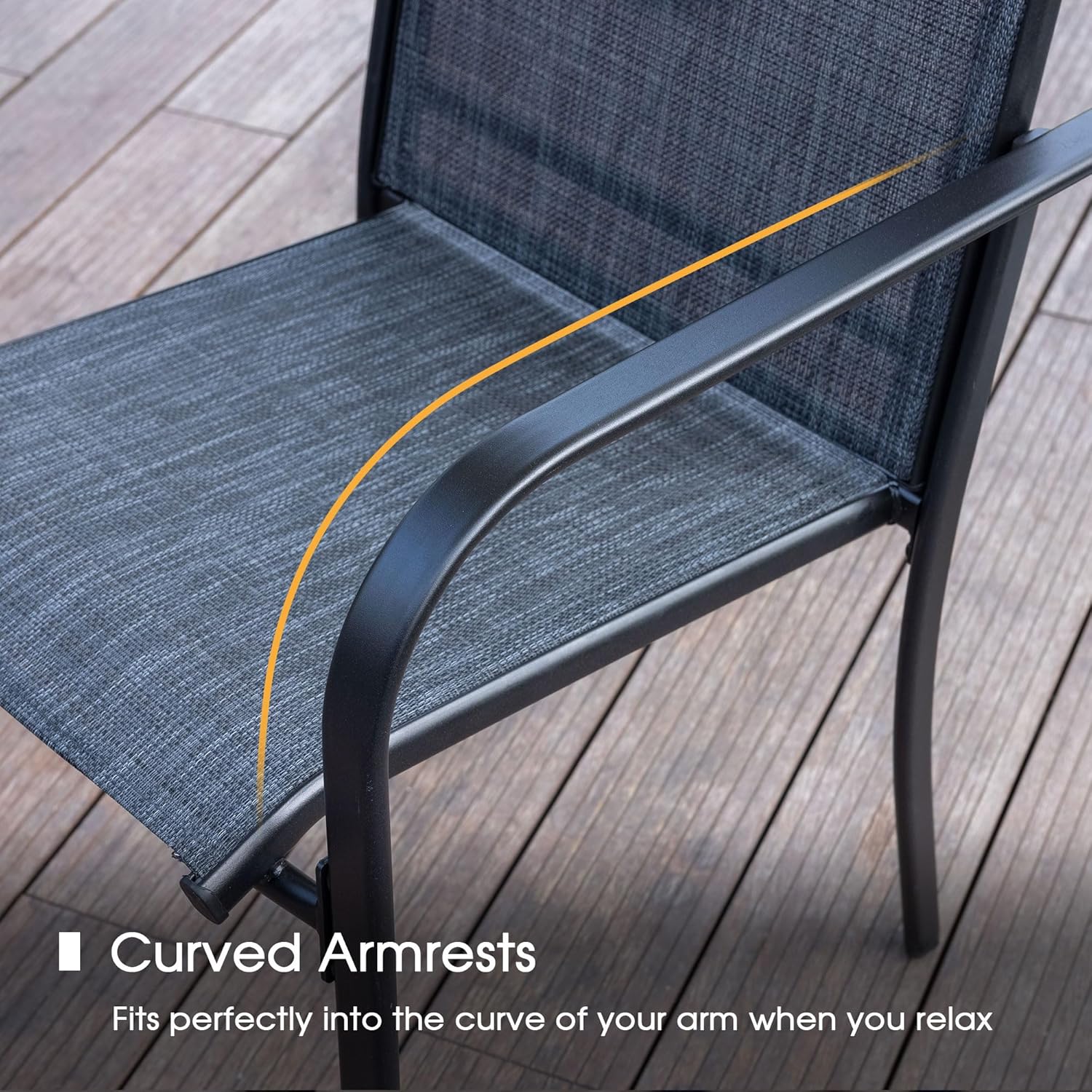 - 【Grey Patio Dining Chairs】 Slight lawn chairs are stackable for space-saving and portability. Breathable patio chairs feature good airflow, UV, fade, and stain-resistant, comfortable to sit in the courtyard or garden on a hot summer day