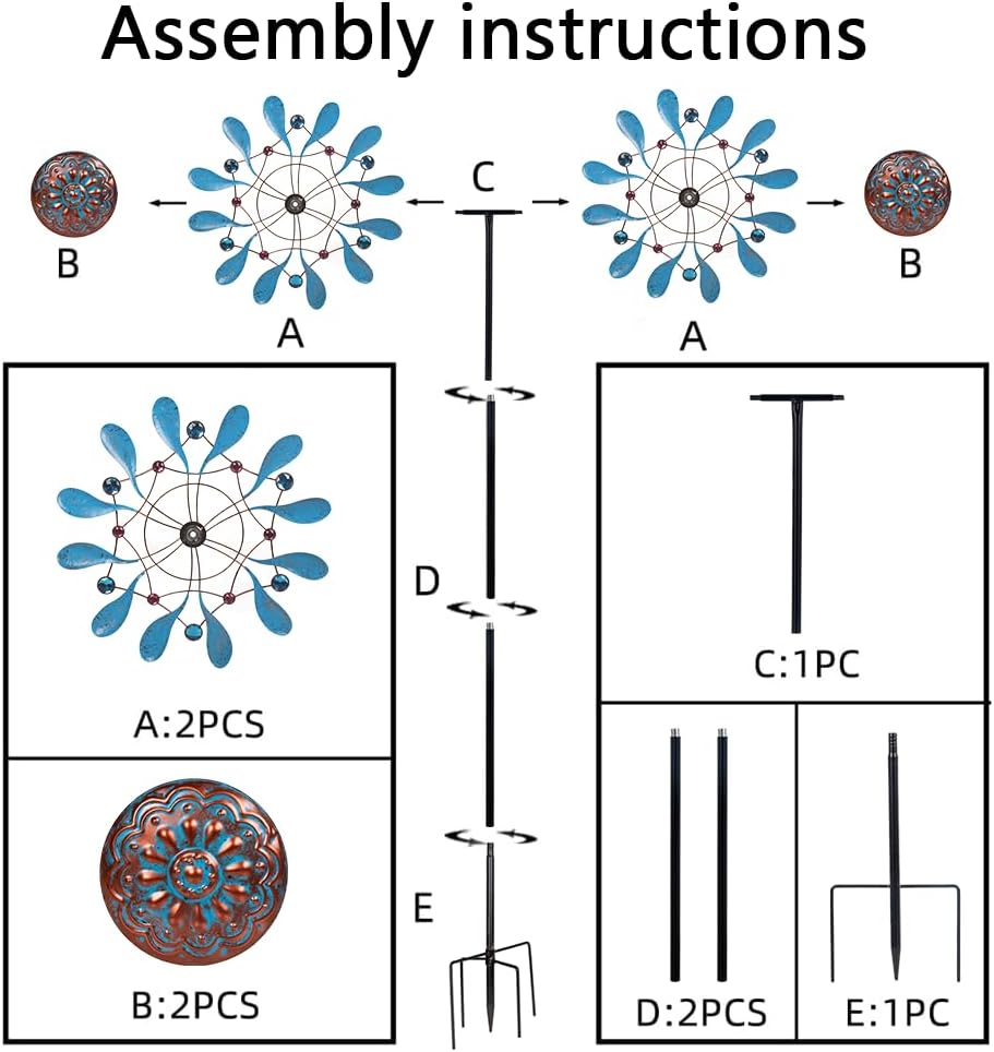 - Weather Resistance:This wind spinner can be used in hot, rainy, snowy and any other weather because of rust-proof layer, and 4 sturdy stake can ensure that the garden windmill can be used normally on windy days